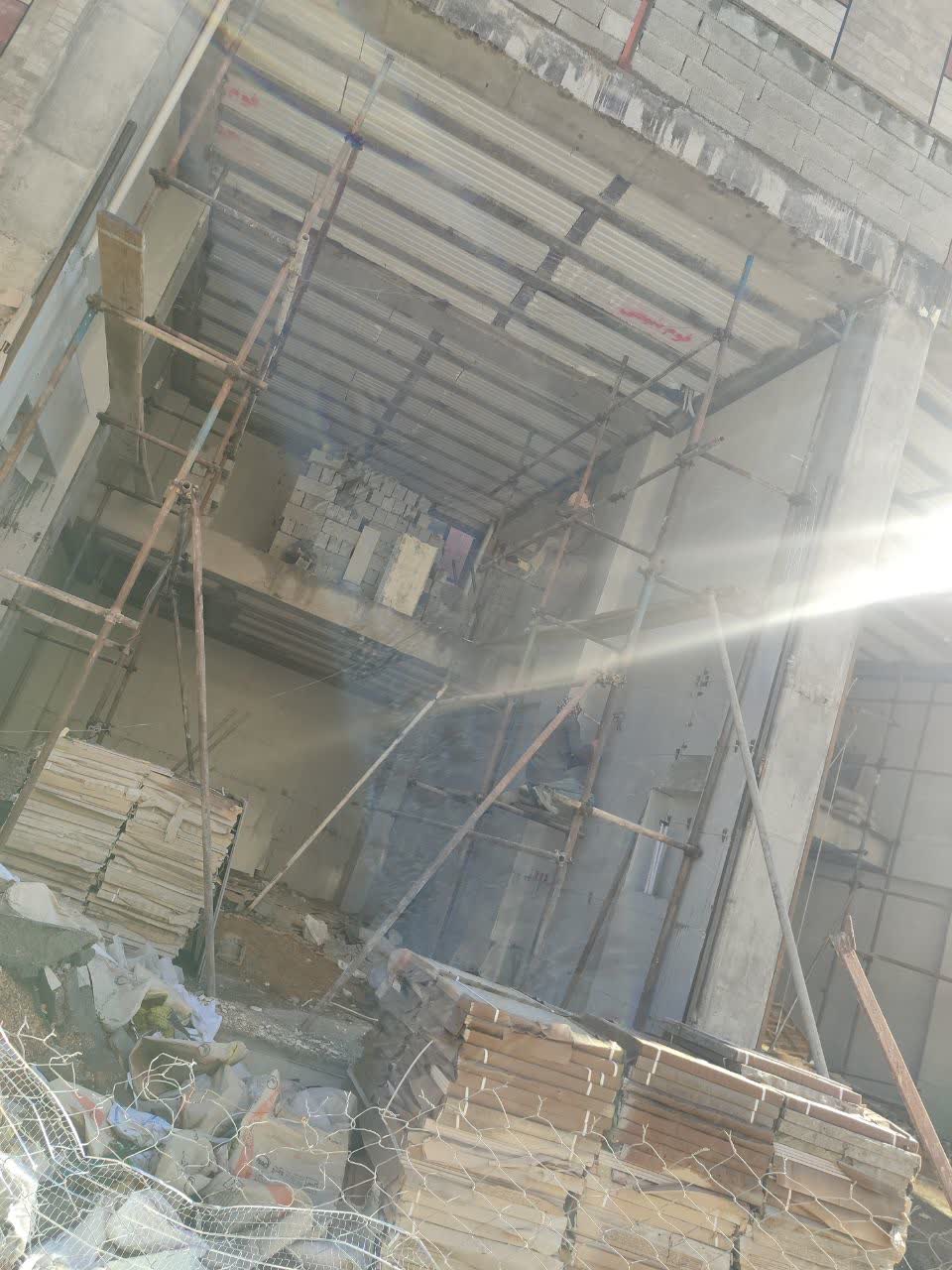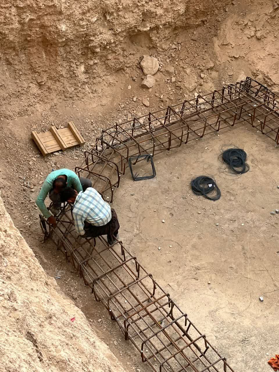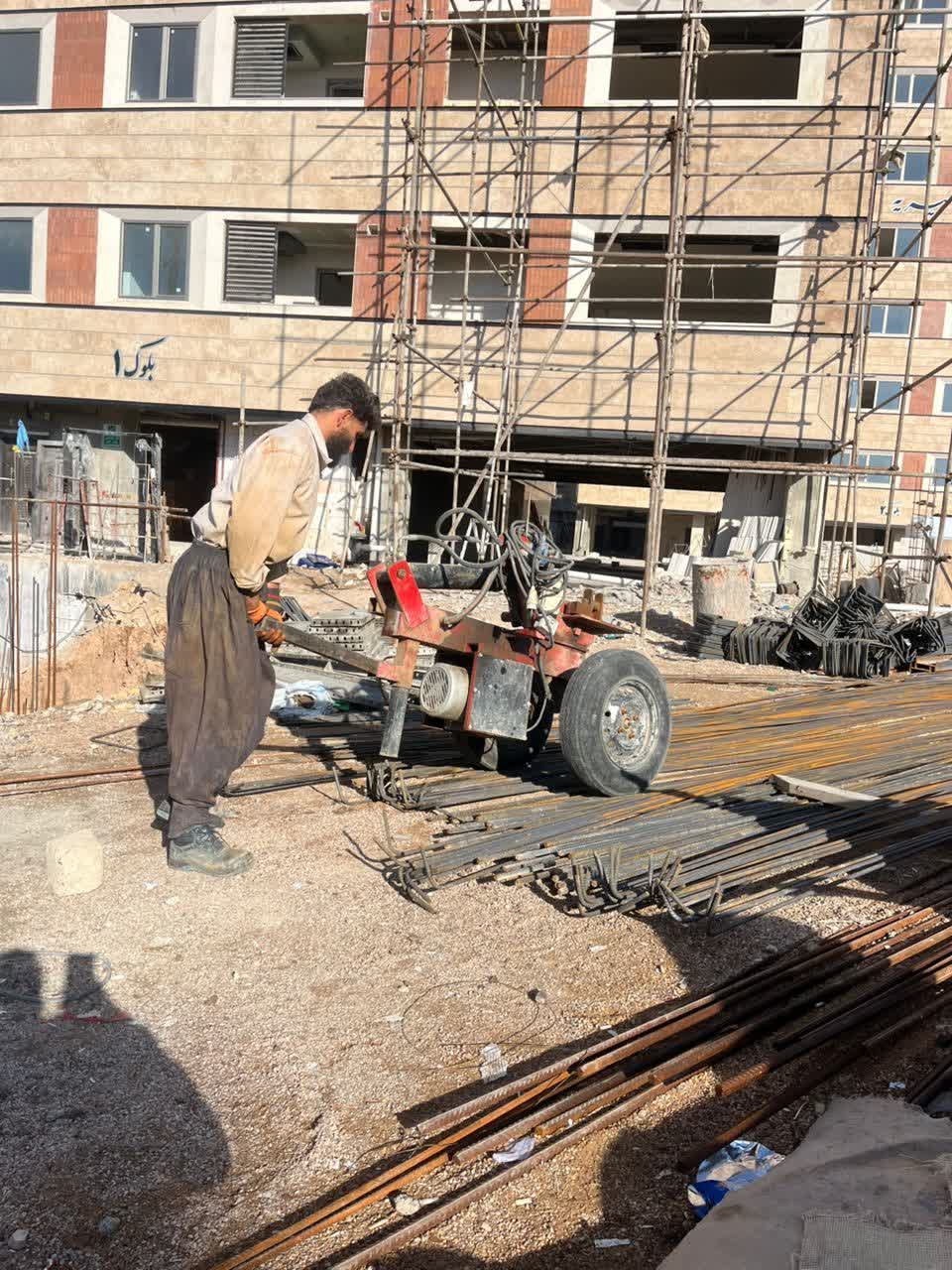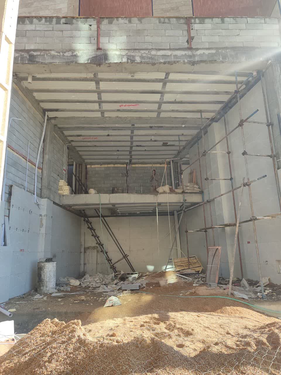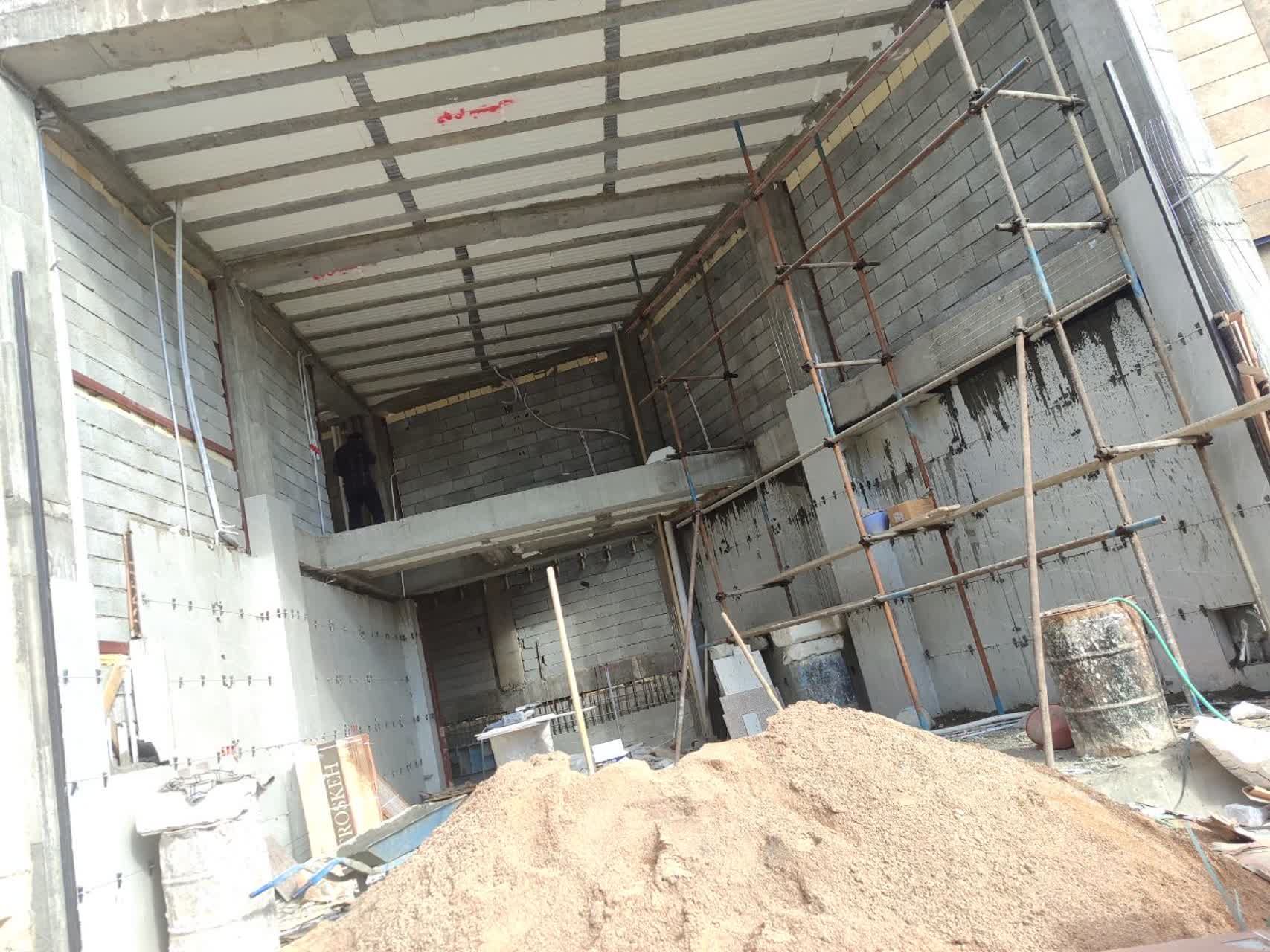 پروژه اندیشه 1404/10/01 : تمیزکاری نهایی بلوک دو / آرماتور بندی دیوار حائل تجاری / کناف بلوک دو / شیب بندی رمپ / انتقال درب اتاقی واحد مصالح