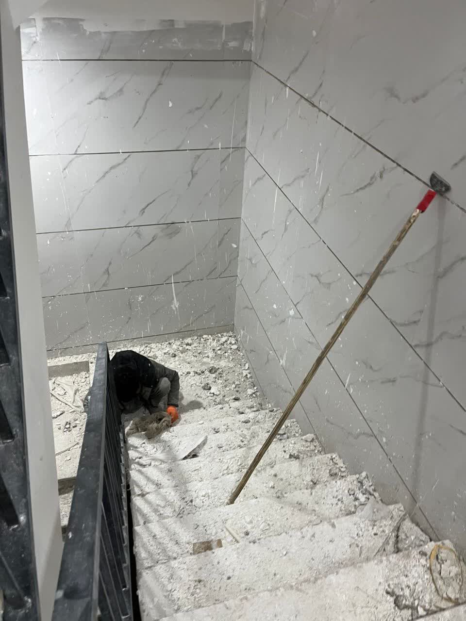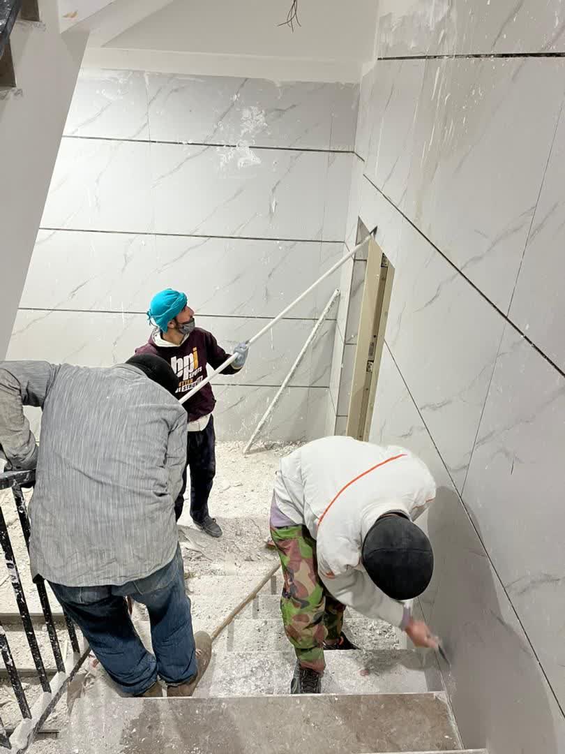 پروژه اندیشه 1404/09/17 : شیب بندی الحاقیه / برق راه پله و واحد مصالح / نما و بند کشی بلوک یک / شروع تمیزکاری نهایی بلوک دو / تست فاضلاب های سرویس و واحد ها / سرامیک تجاری
