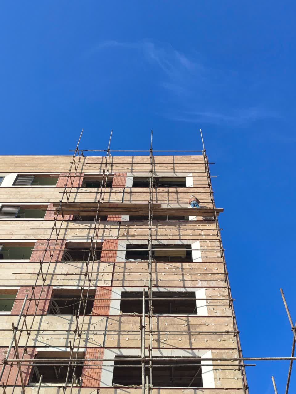 پروژه اندیشه 1404/09/26 : اتمام نما هز دو بلوك و تميز شدن واحد مصالح / نصب پریز واحد مصالح / بند كشي تجاري