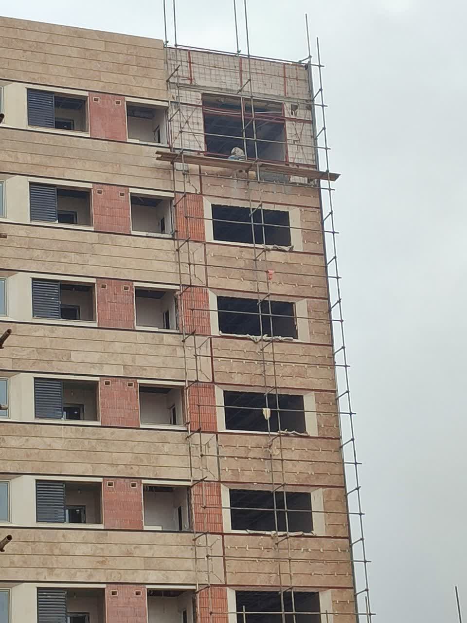 پروژه اندیشه 1404/09/22 : نما طبقه هشتم بلوک دو / جوشکاری نرده دیوار محوطه / کناف طبقه هشتم بلوک دو / سرامیک تجاری