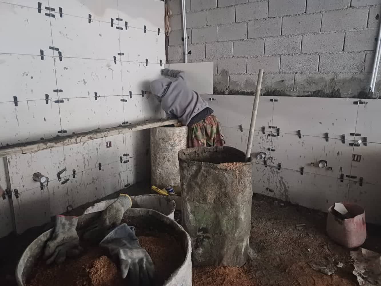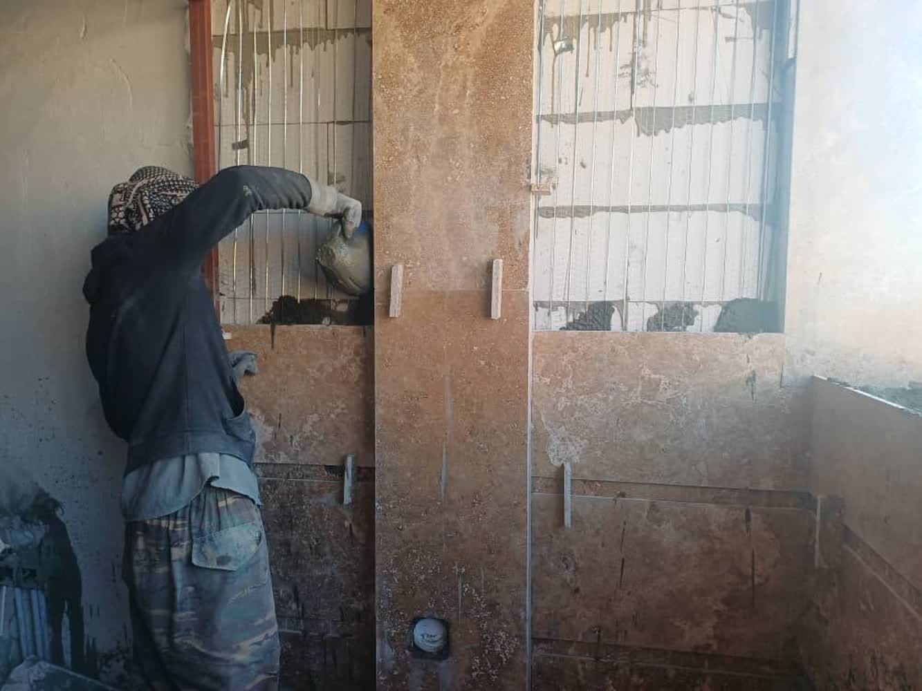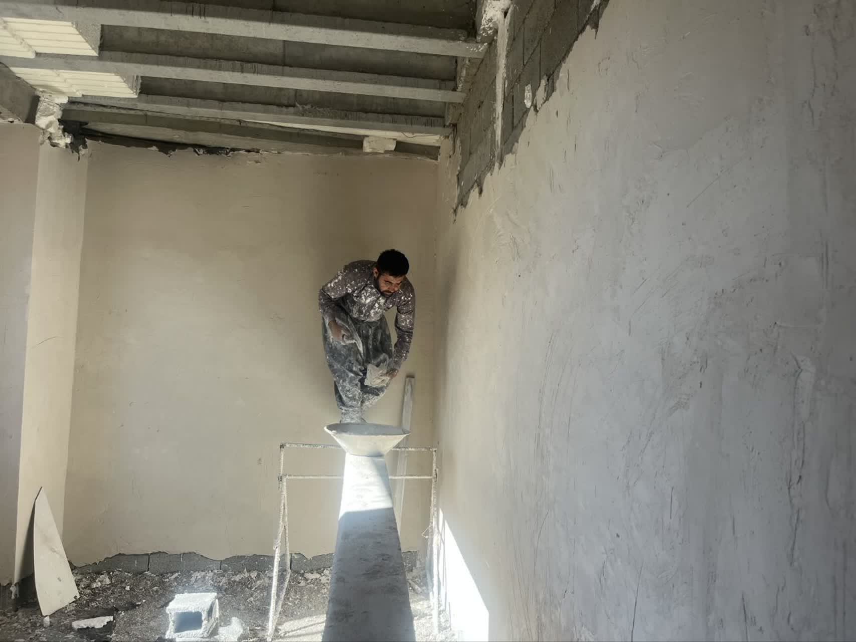 اجرای پلاستر آشپزخانه و سرویس بهداشتی و بالکن های طبقه سوم B /