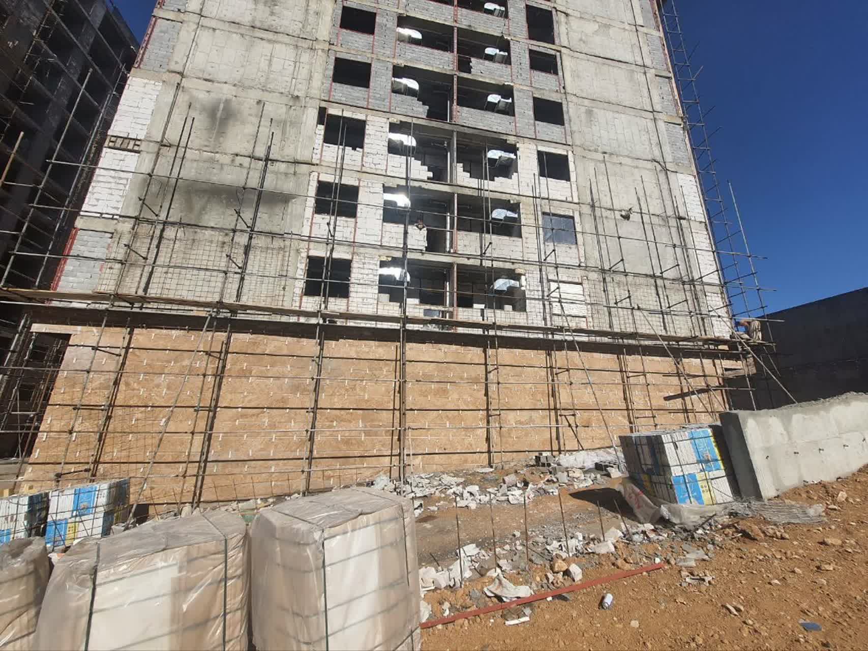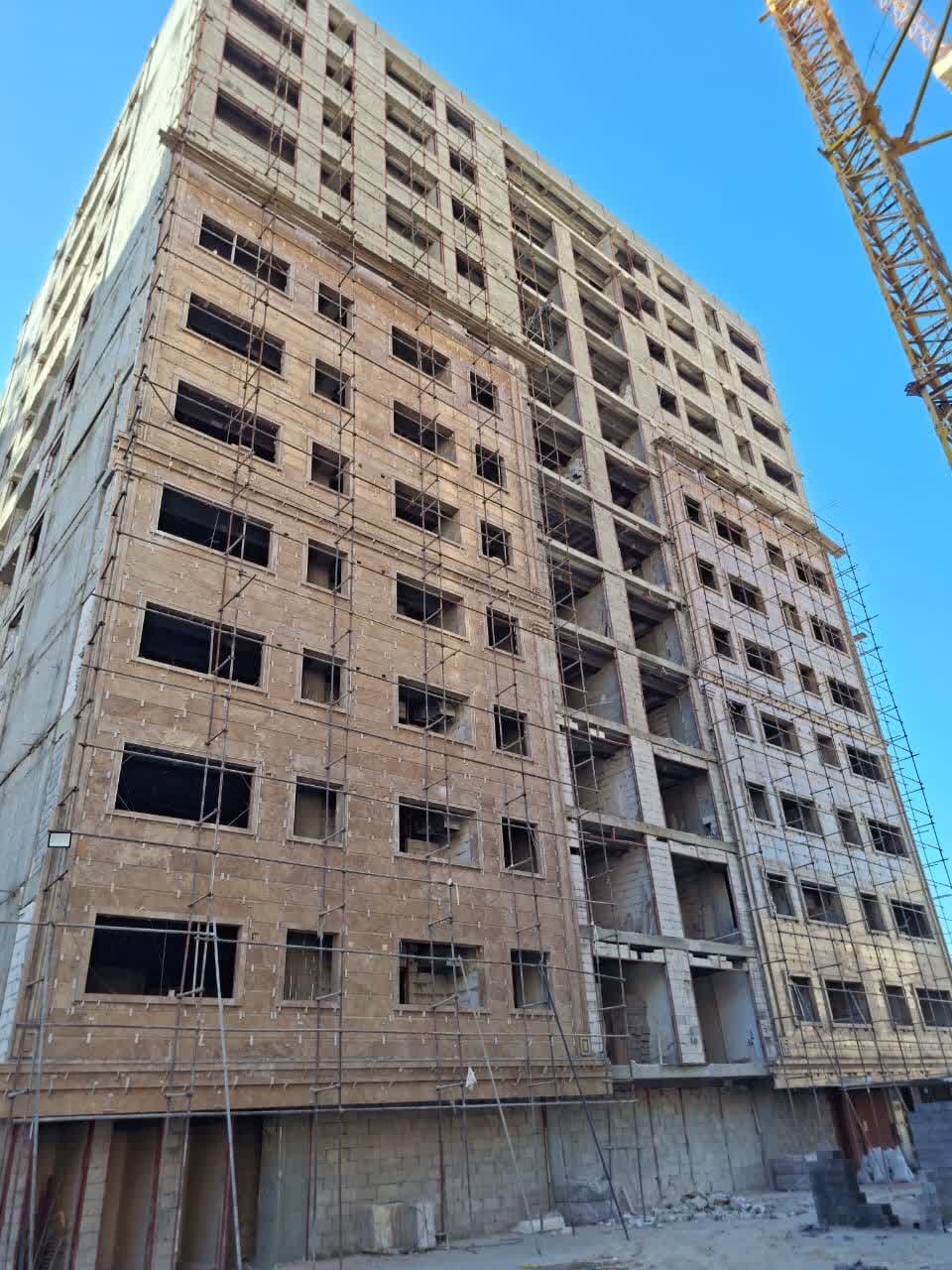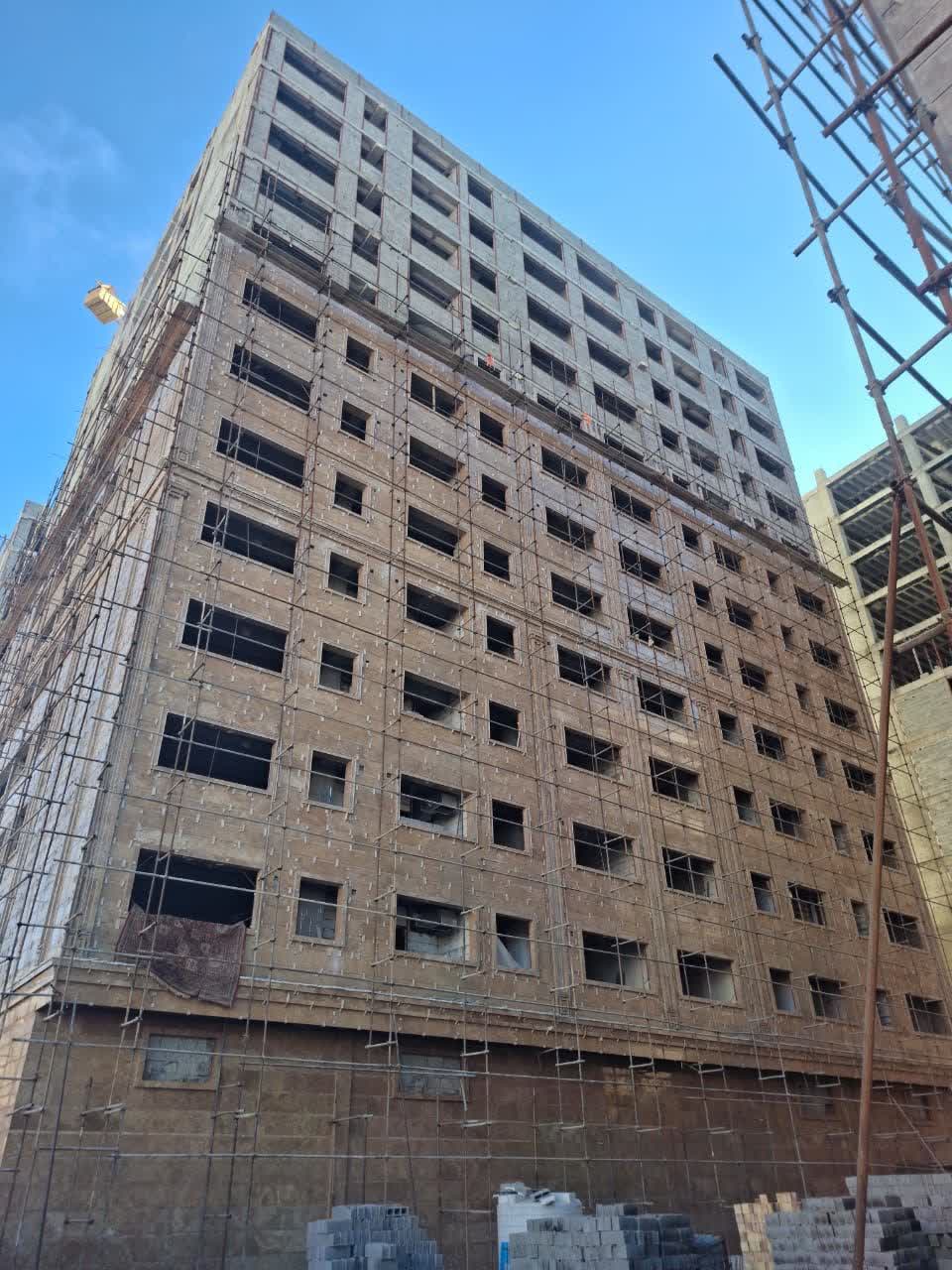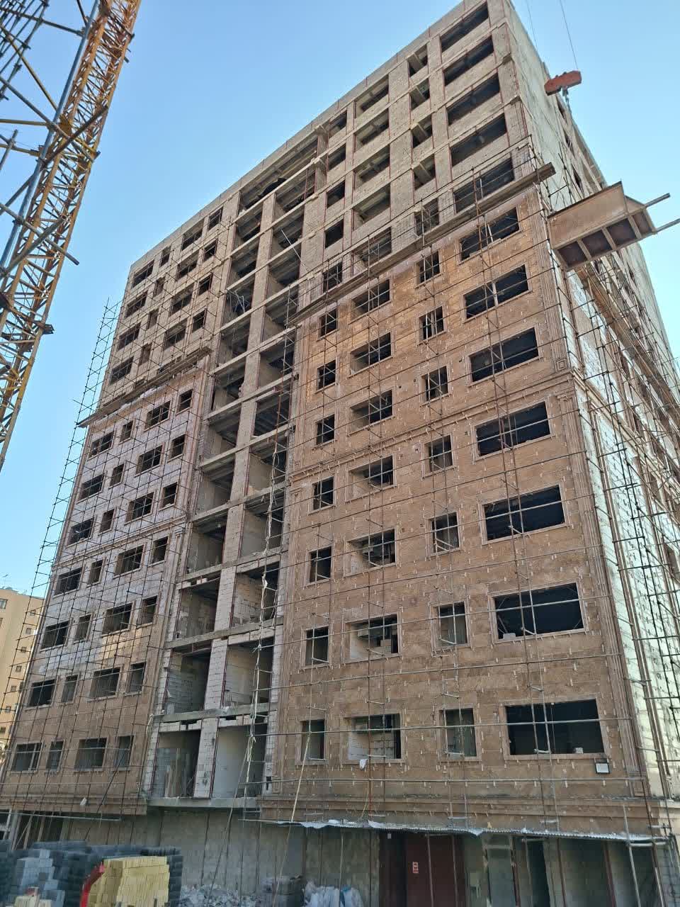 اجرای نما ضلع جنوبی طبیه اخر ضلع غربی طبقه ۷ و ضلع جنوبی زیرزمین بلوک D /