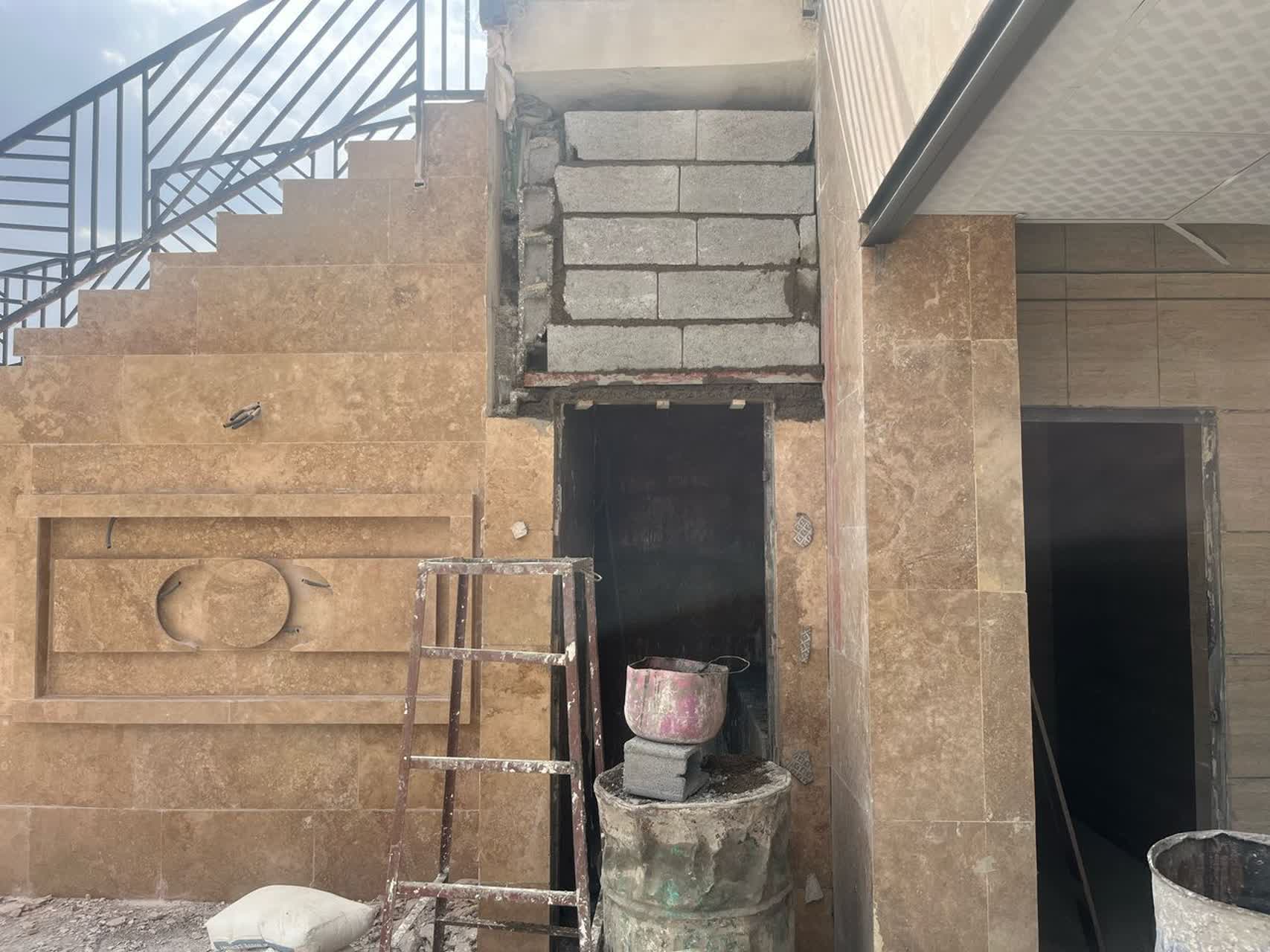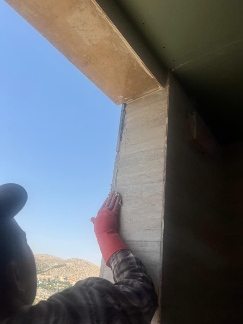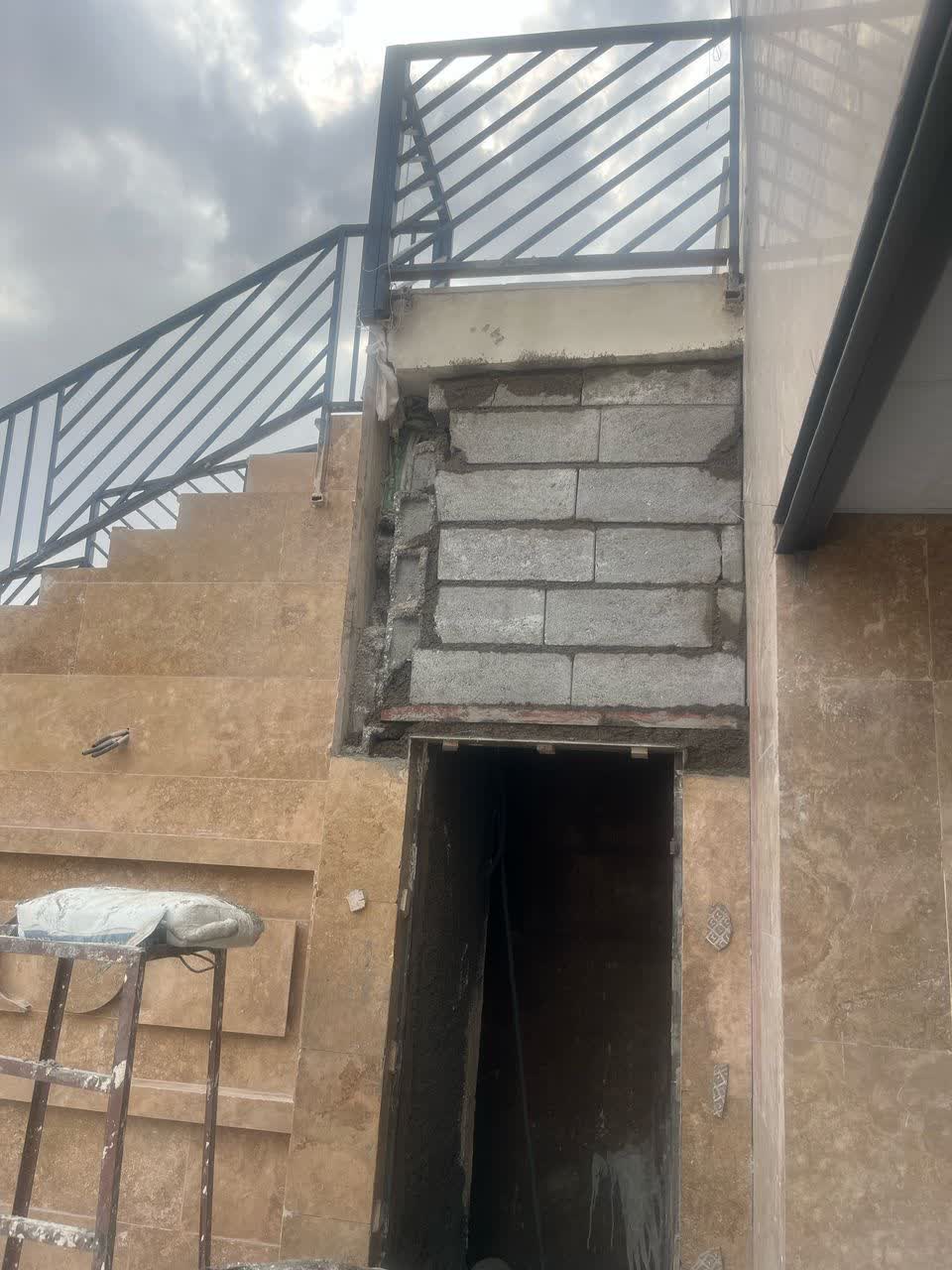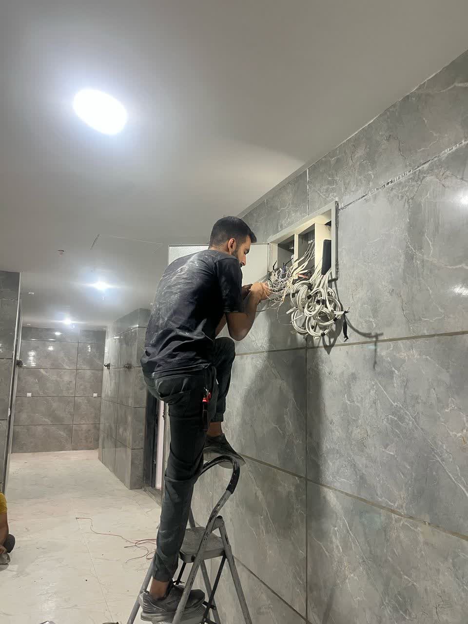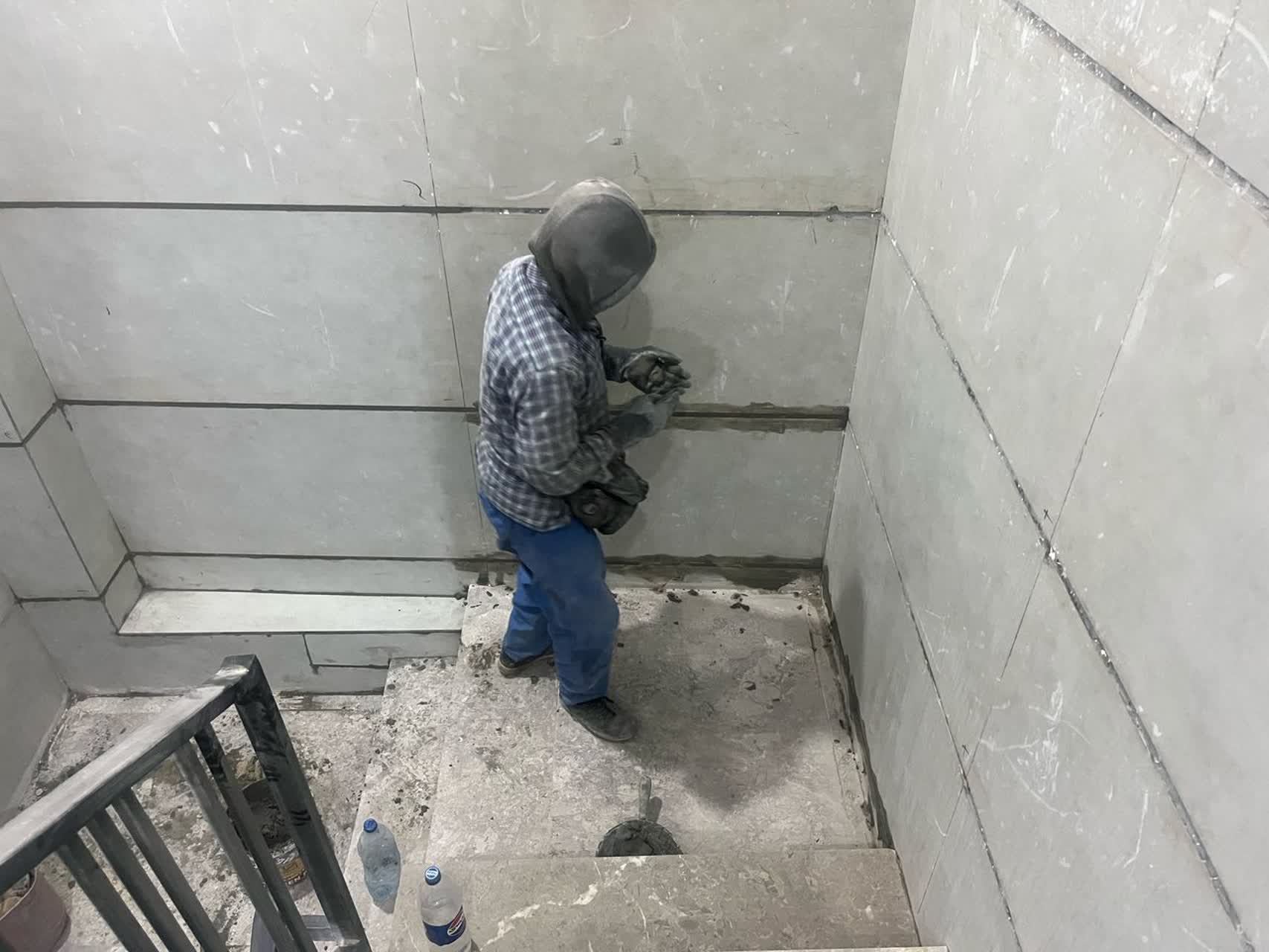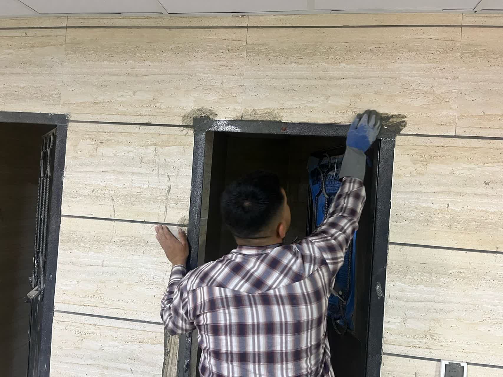پروژه ارم 1403/12/05 : ادامه نمای لابی / نصب کلید و پریز / پرکردن چهارچوب درب لابی