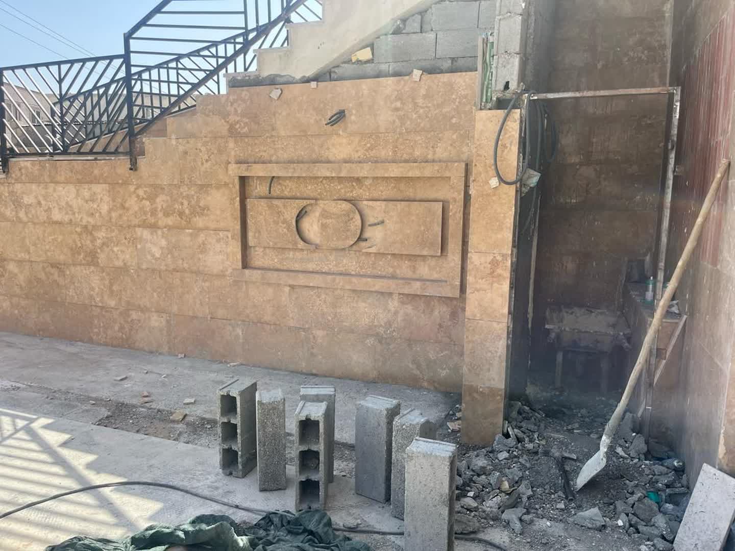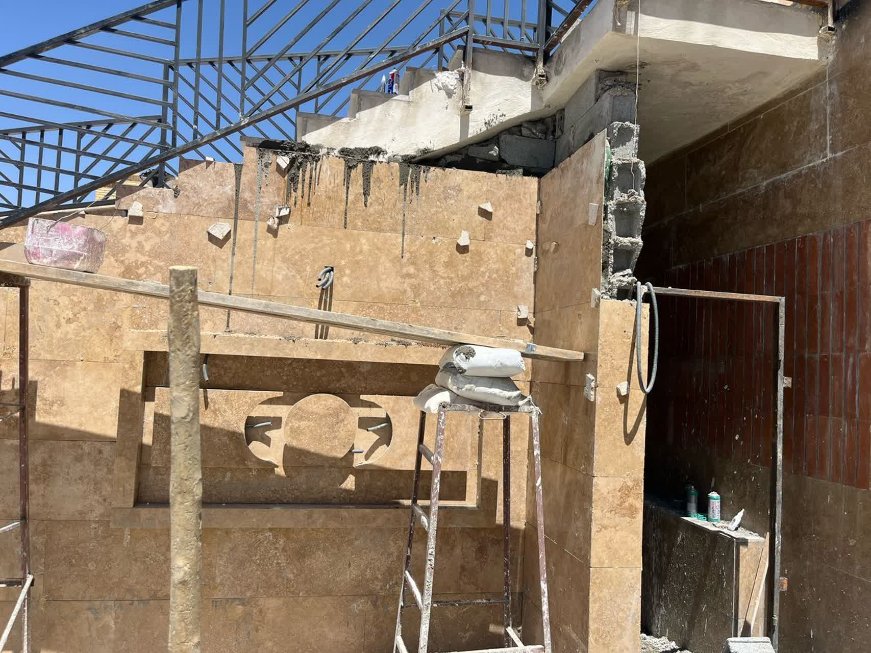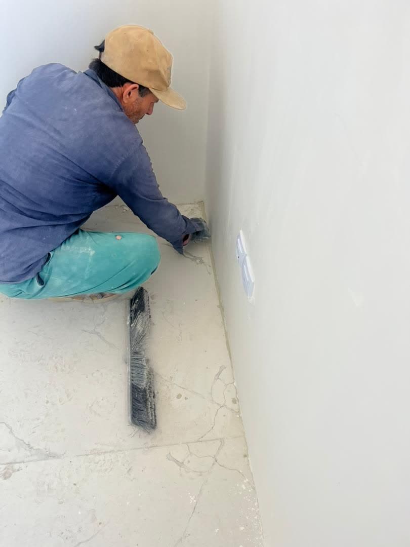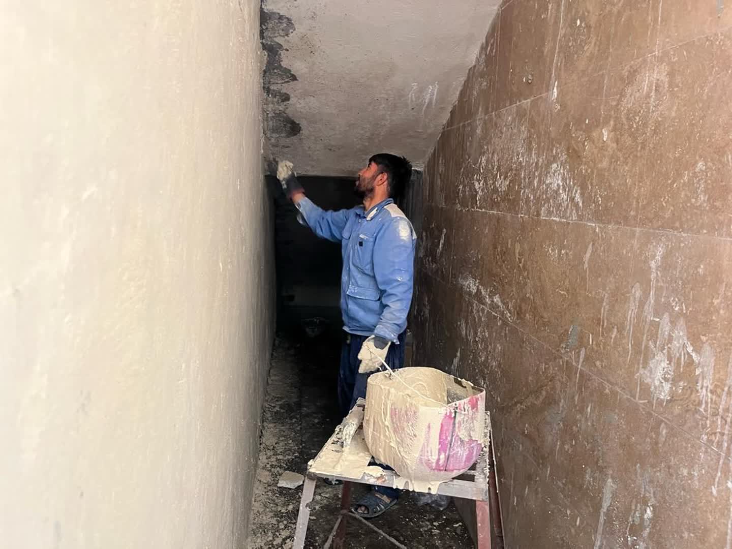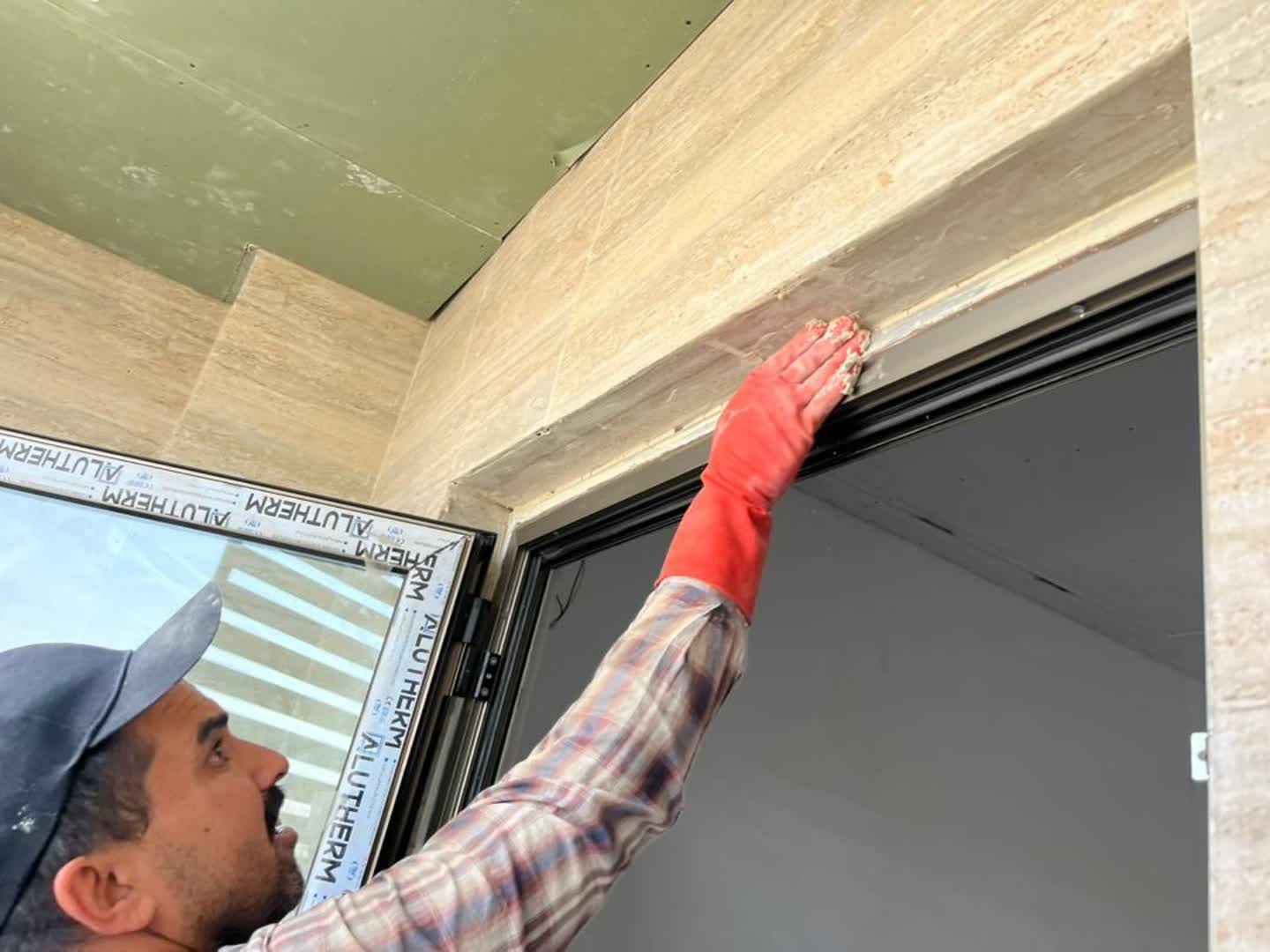 پروژه ارم 1403/12/05 : ادامه نمای لابی / نصب کلید و پریز / پرکردن چهارچوب درب لابی