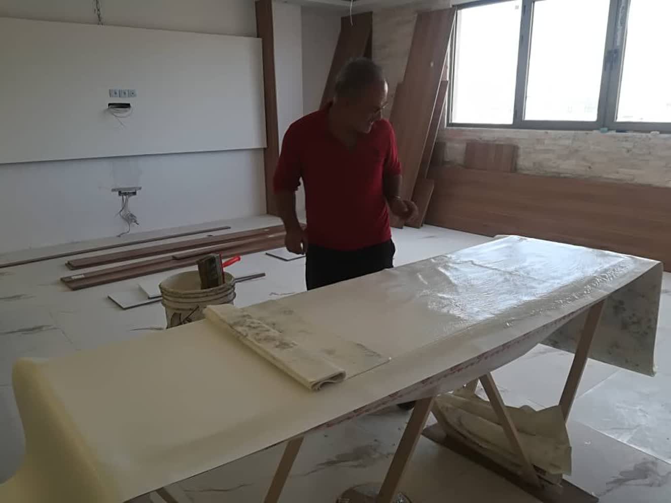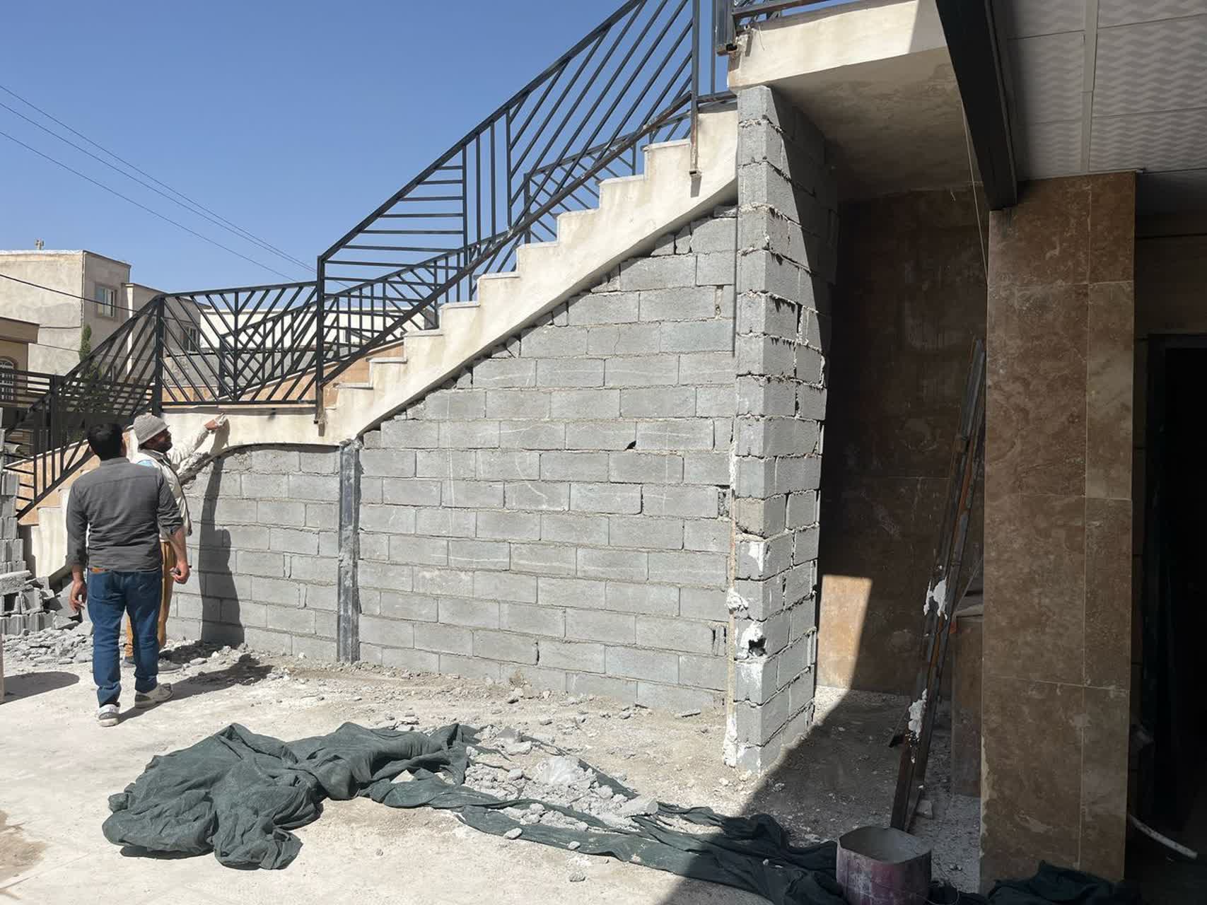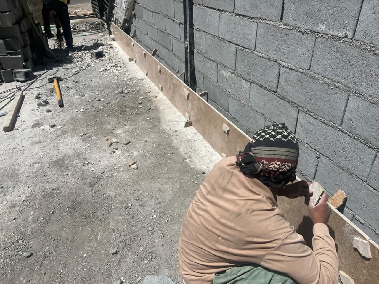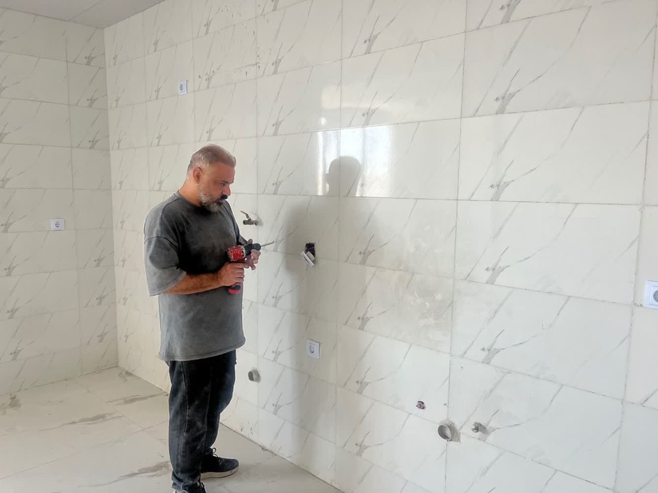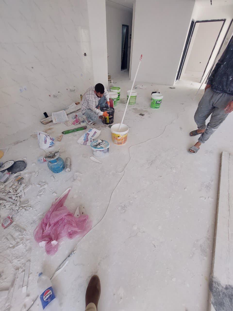 پروژه ارم 1403/12/05 : ادامه نمای لابی / نصب کلید و پریز / پرکردن چهارچوب درب لابی