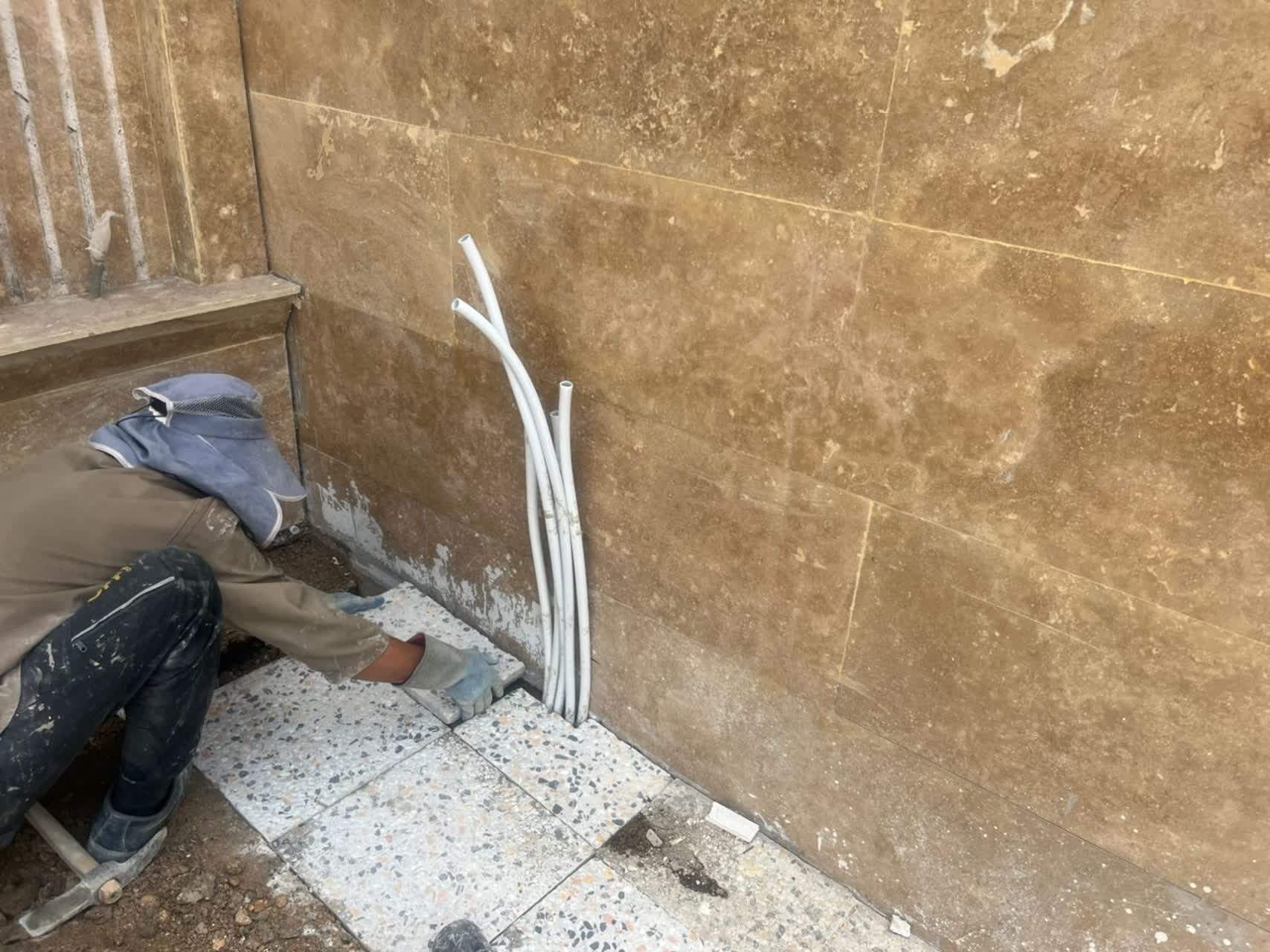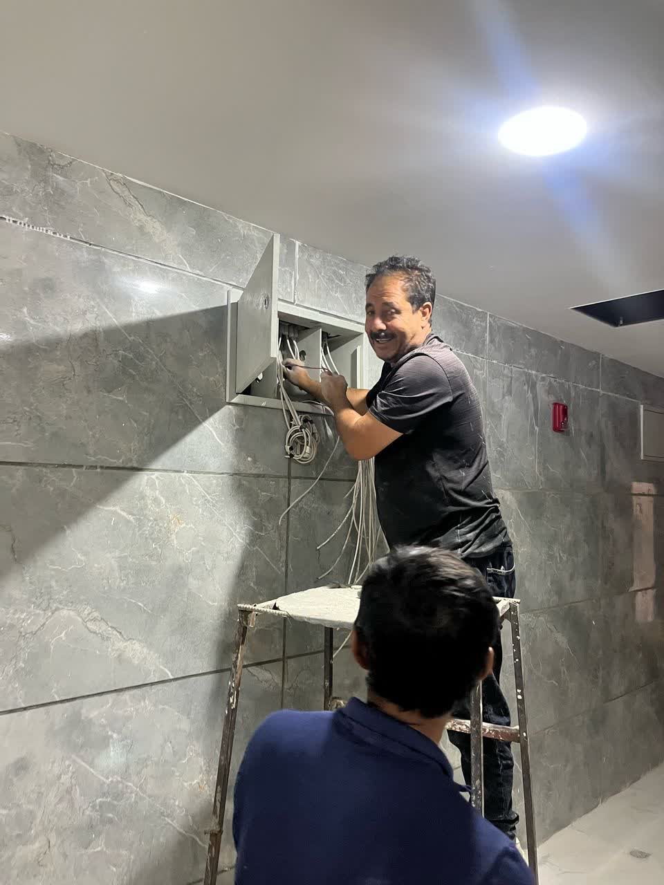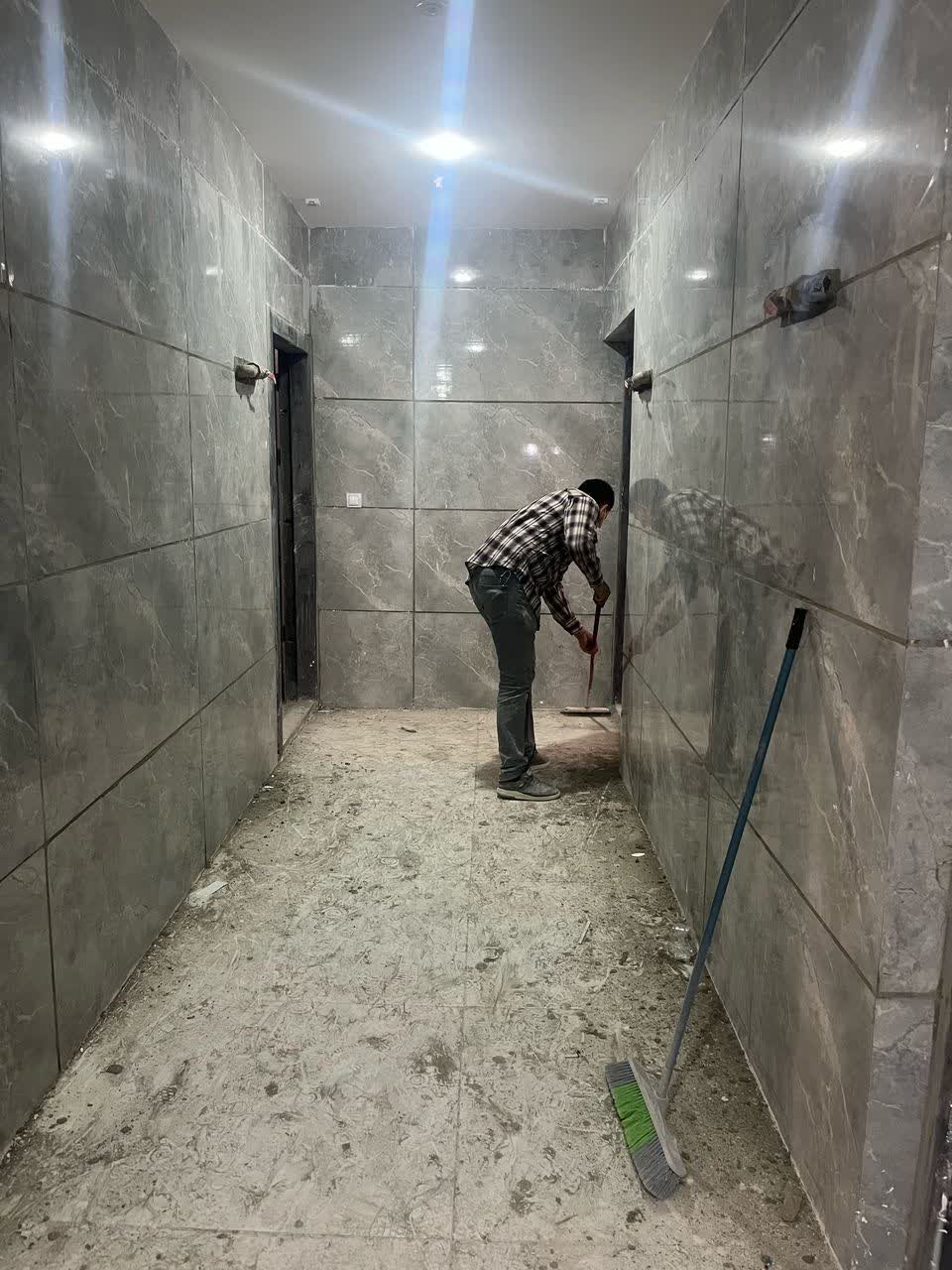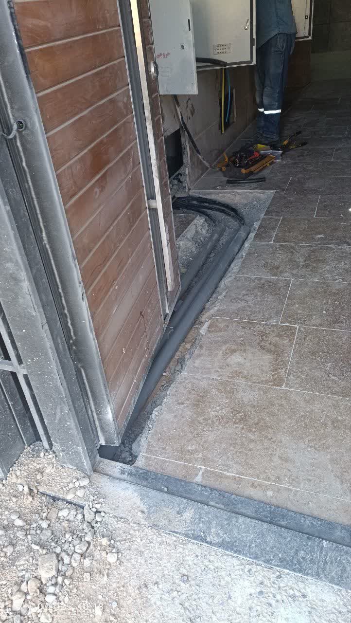 پروژه ارم 1403/12/08: ادامه سیم کشی طبقه 7/ ادامه نمای لابی ورودی / نصب چهارچوب ورودی / تعمیر پمپ و اتومات پمپ آب