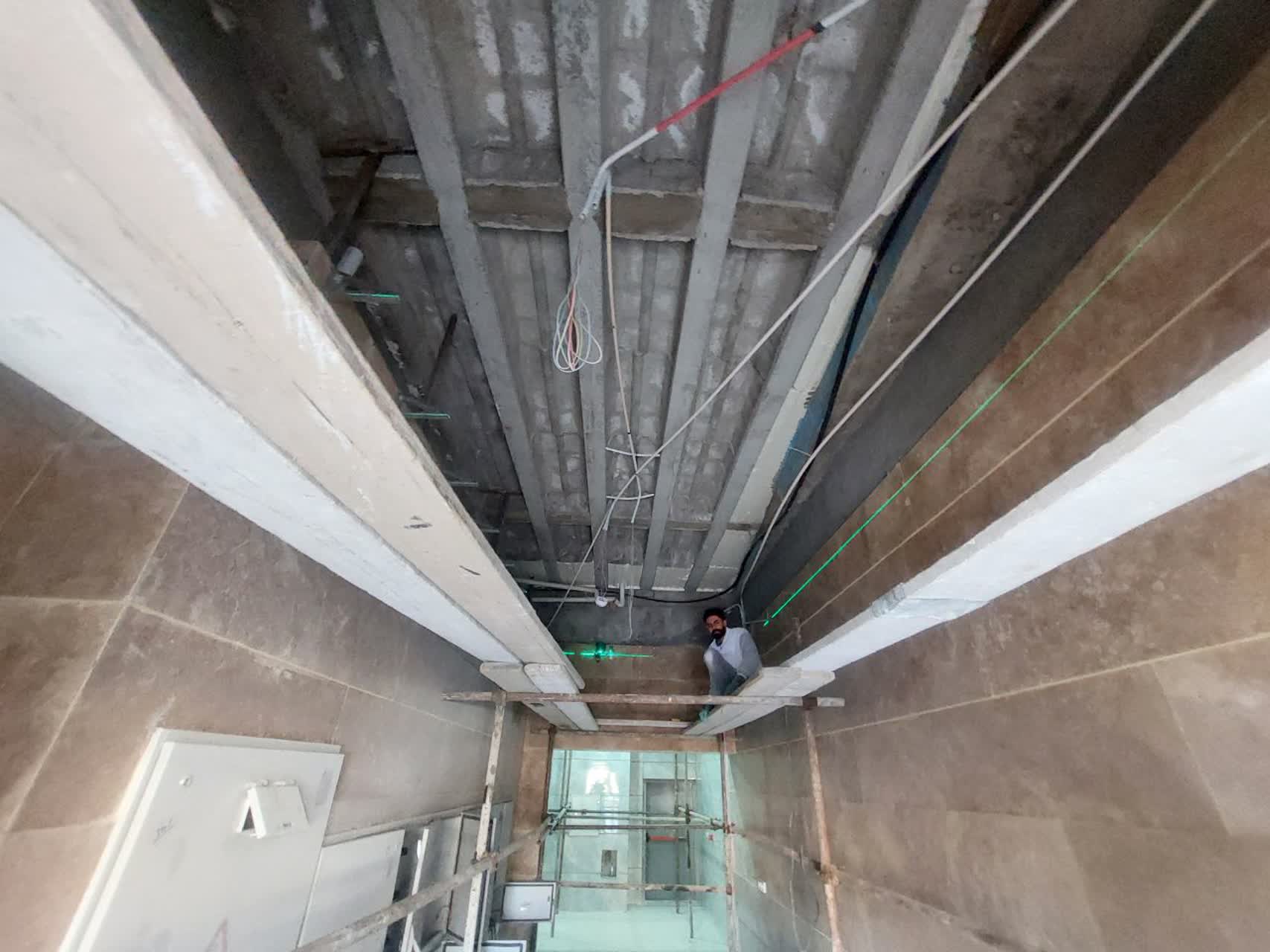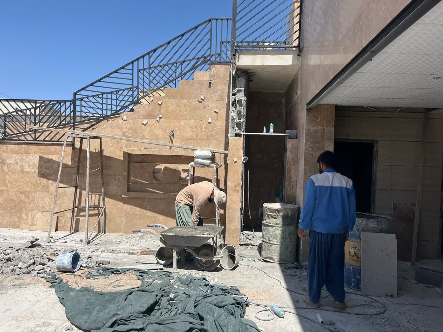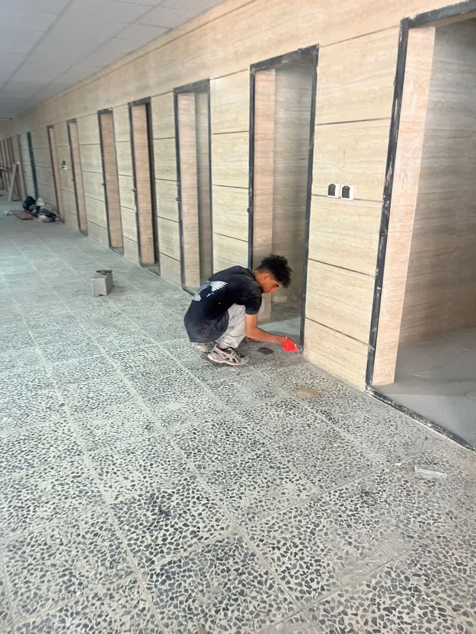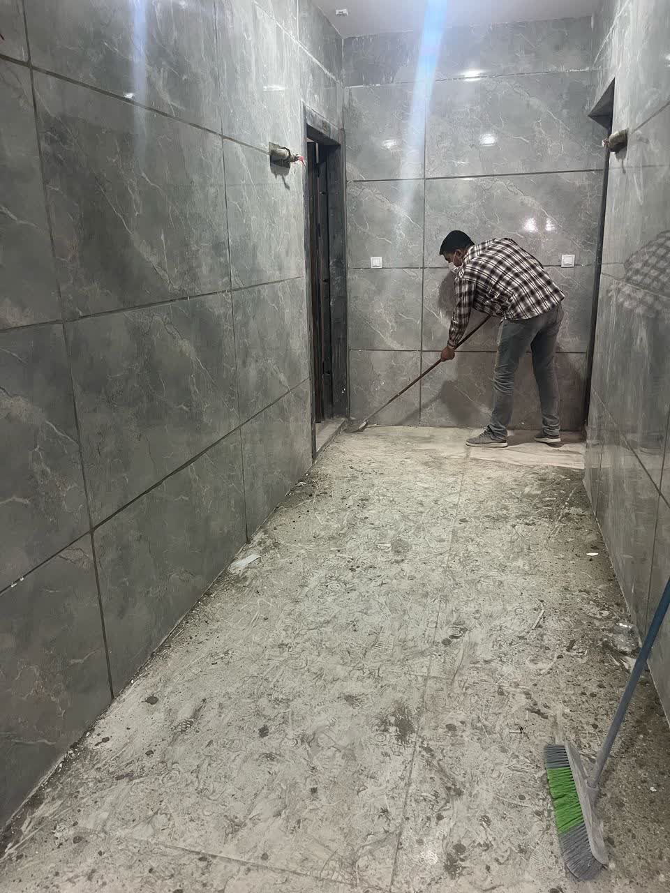 پروژه ارم 1403/12/08: ادامه سیم کشی طبقه 7/ ادامه نمای لابی ورودی / نصب چهارچوب ورودی / تعمیر پمپ و اتومات پمپ آب