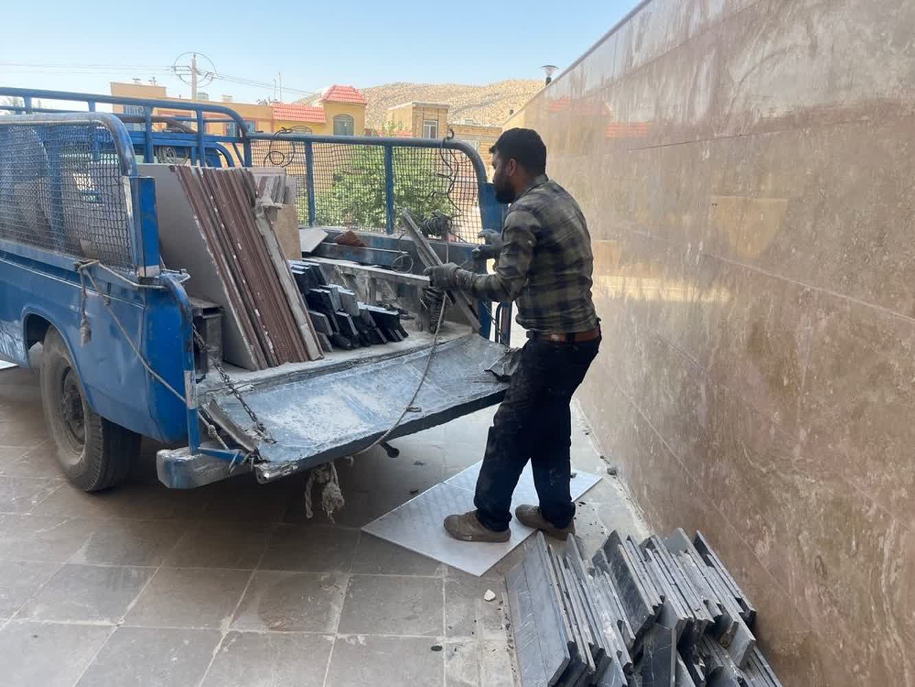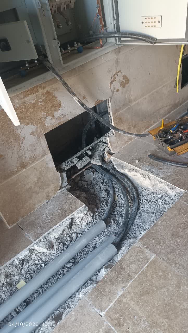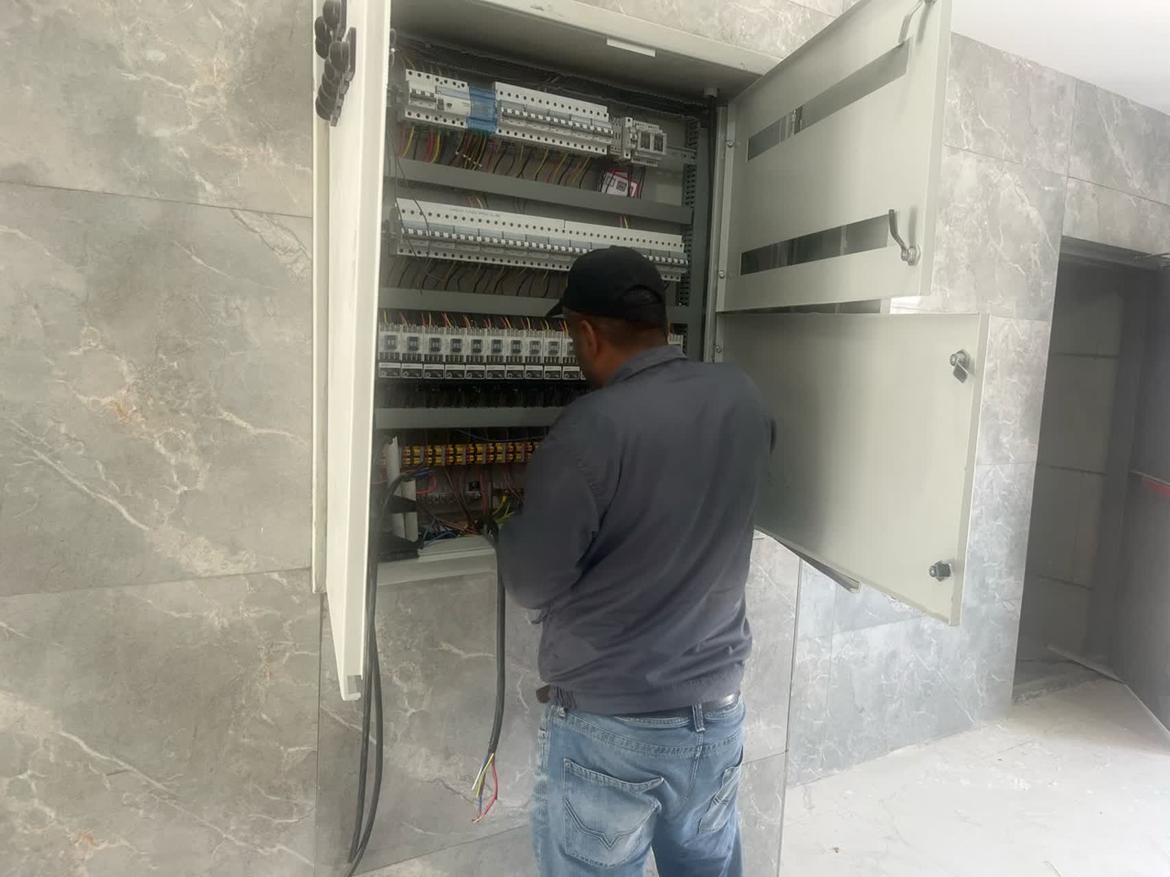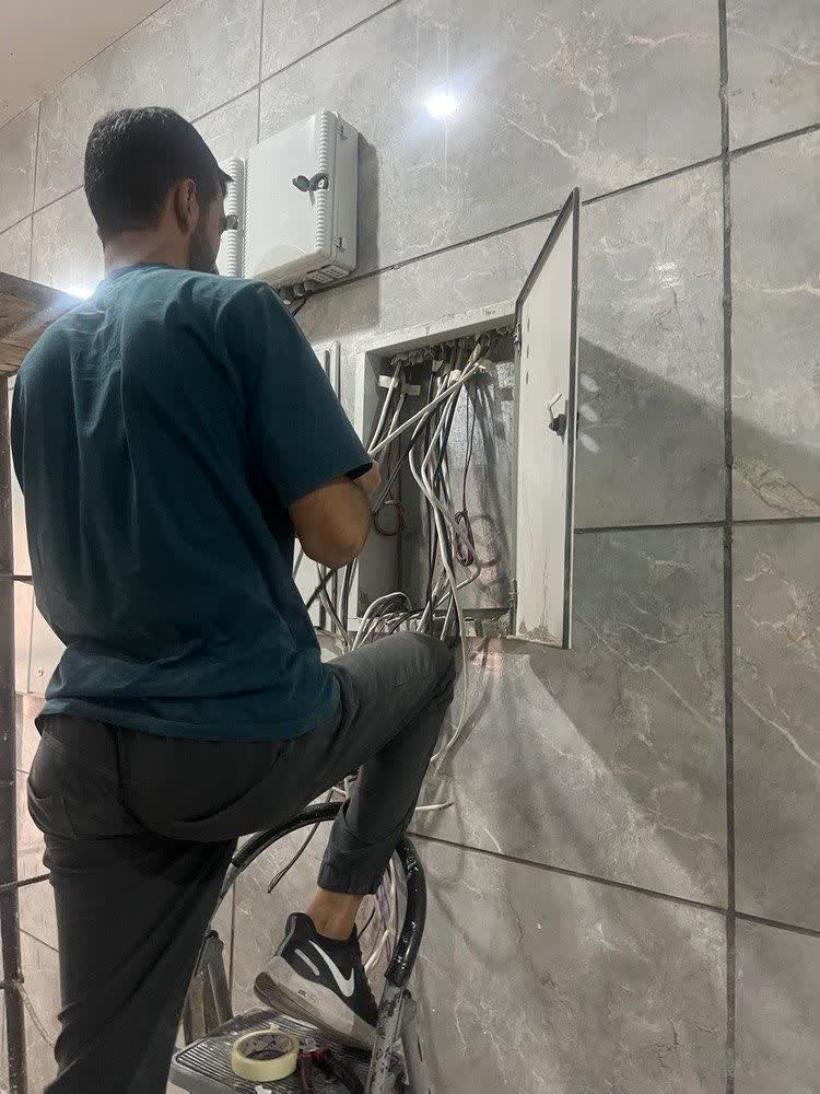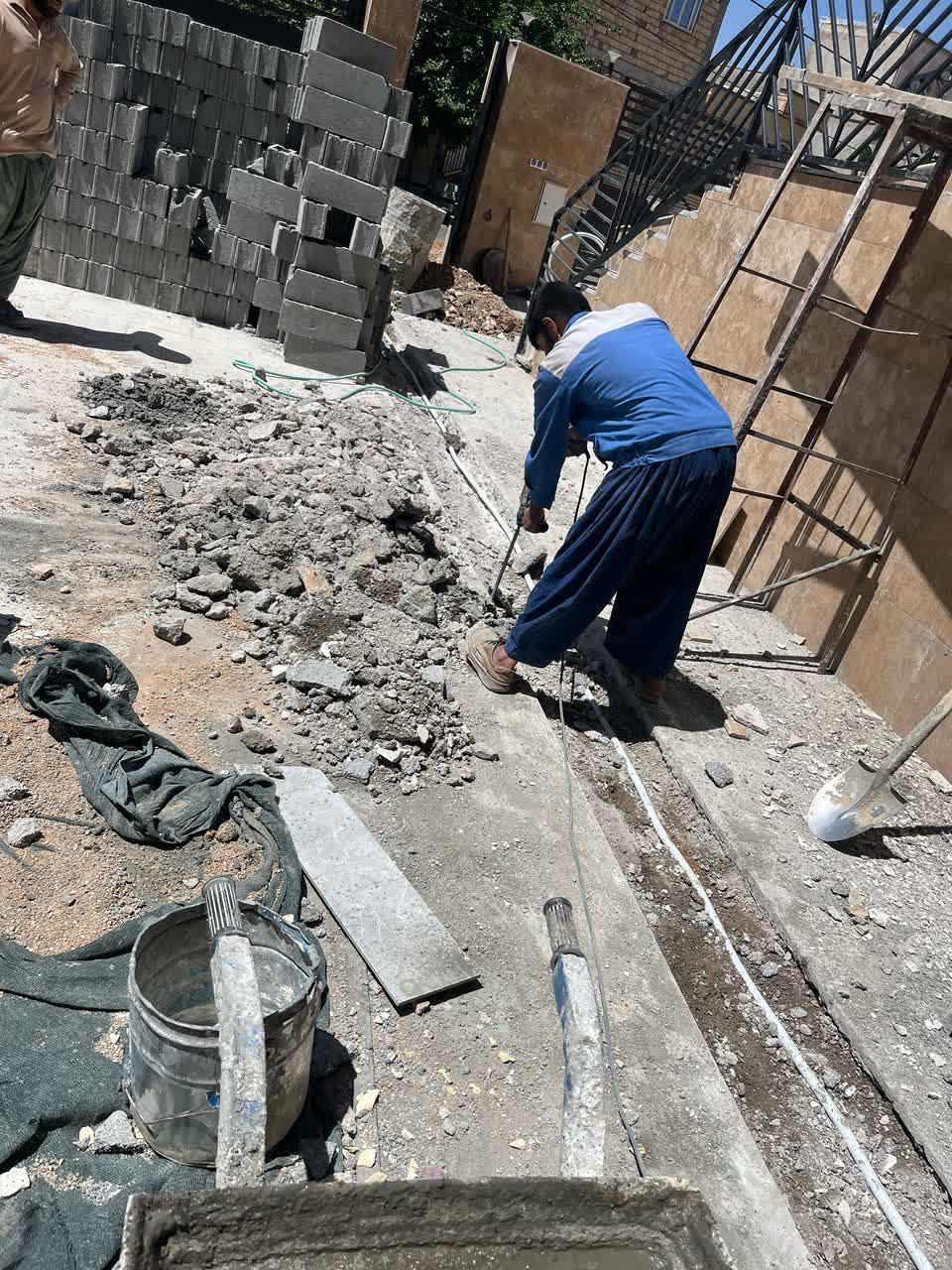 پروژه ارم 1403/12/08: ادامه سیم کشی طبقه 7/ ادامه نمای لابی ورودی / نصب چهارچوب ورودی / تعمیر پمپ و اتومات پمپ آب