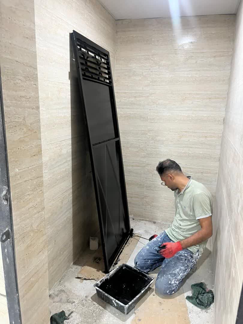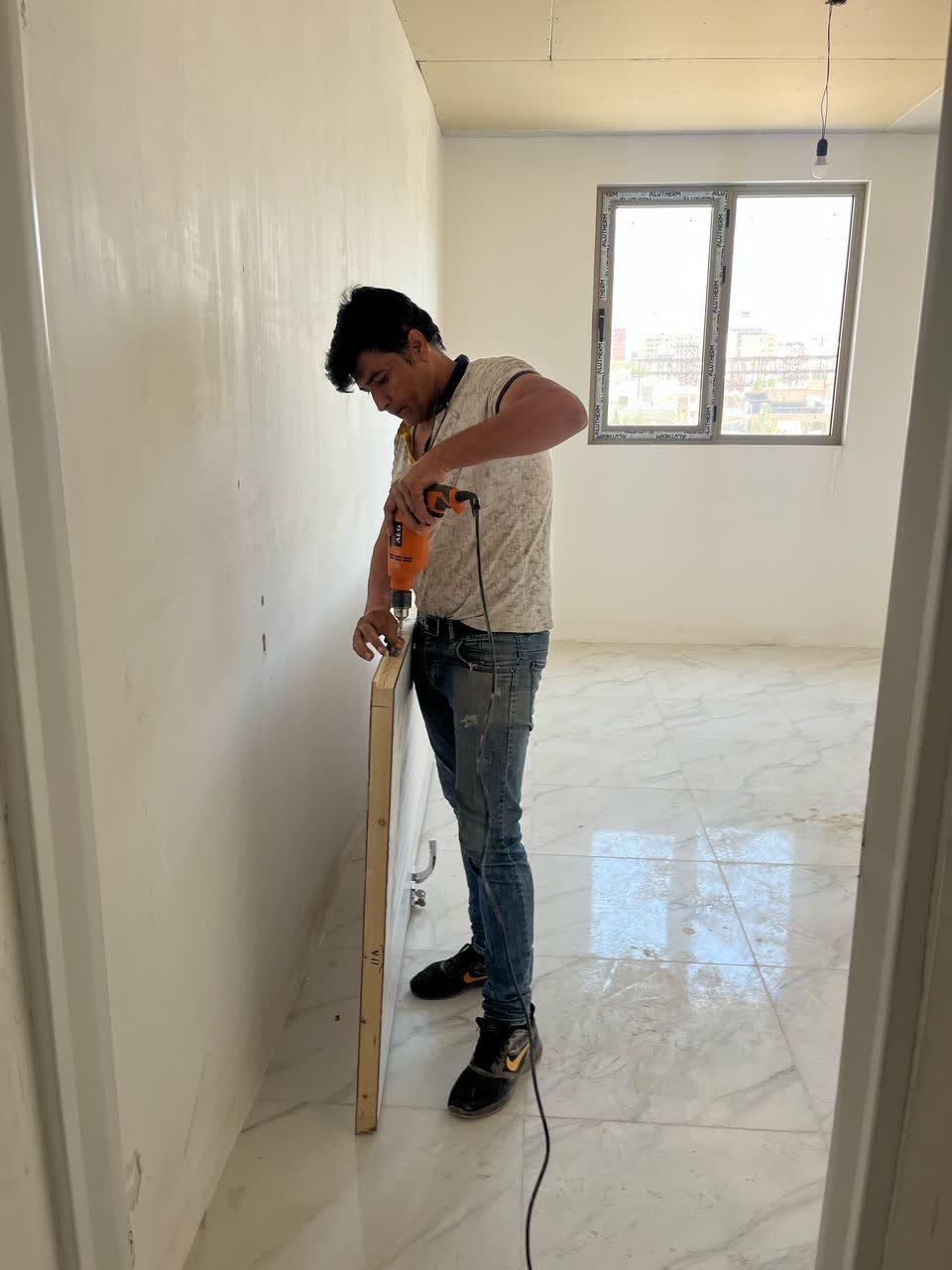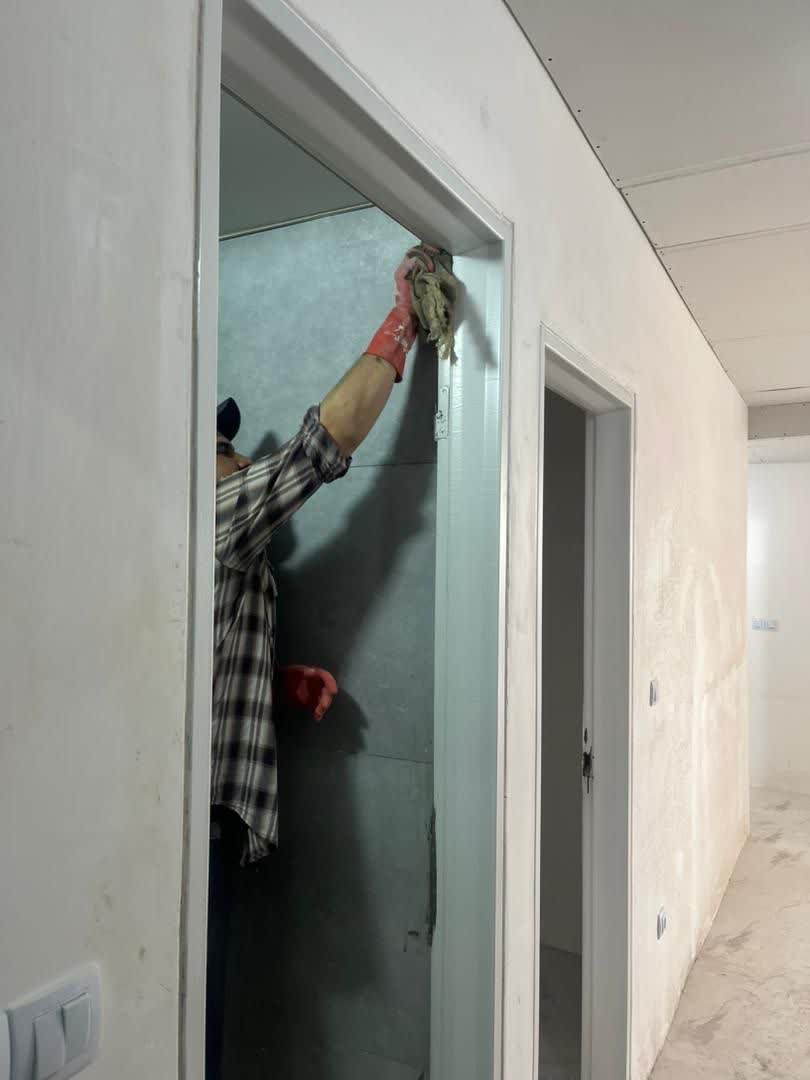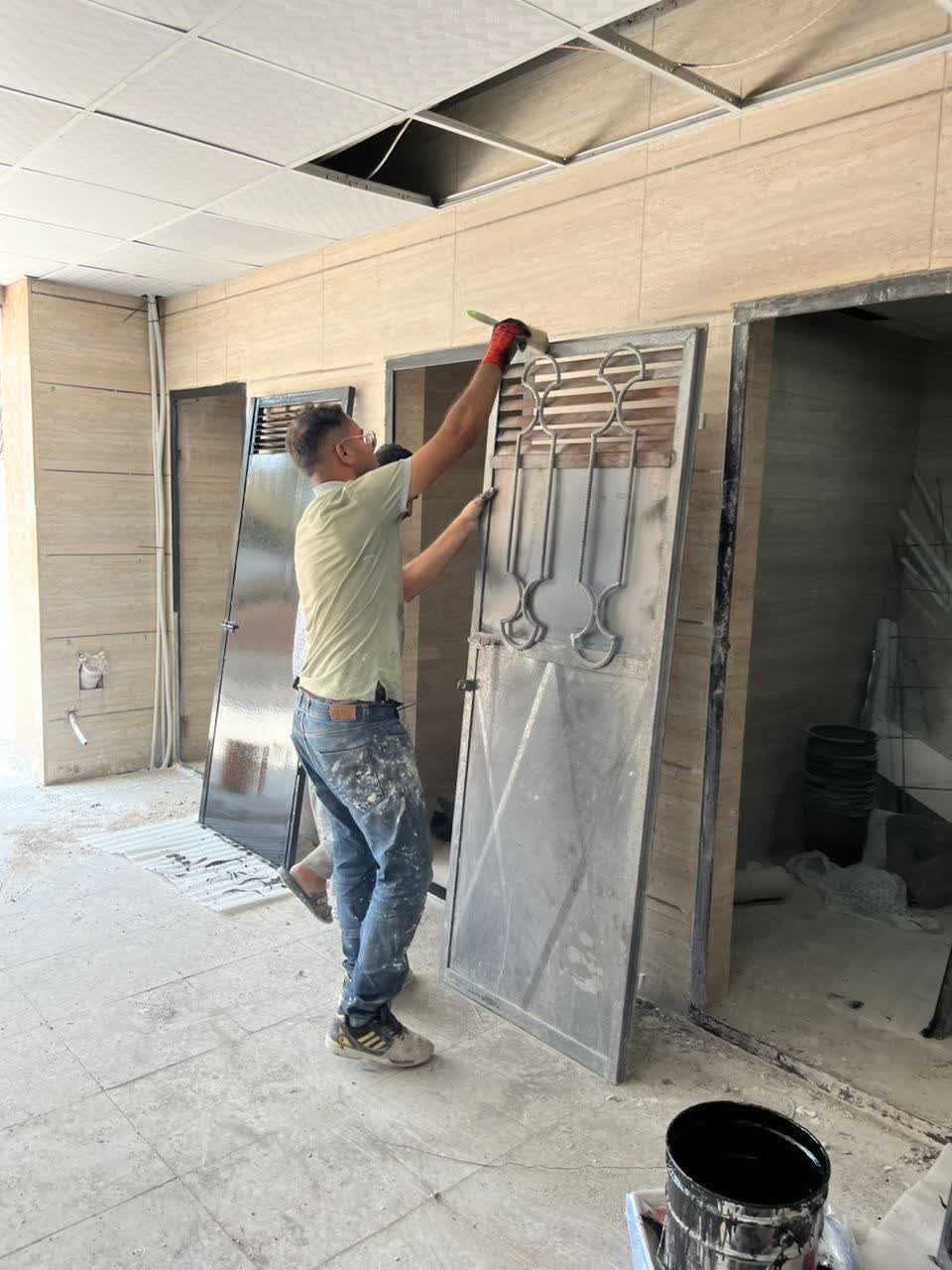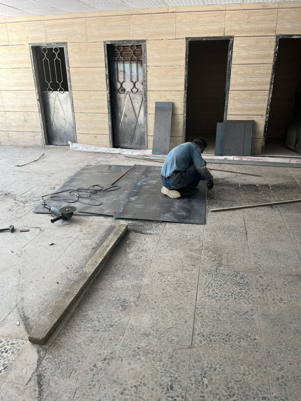پروژه ارم 1403/12/10: ادامه نمای لابی / ادامه نصب درب اطاق / ادامه تابلو انباریها / جوشکاری و نصب نعل درگاه درب نفر رو ضلع شمالی