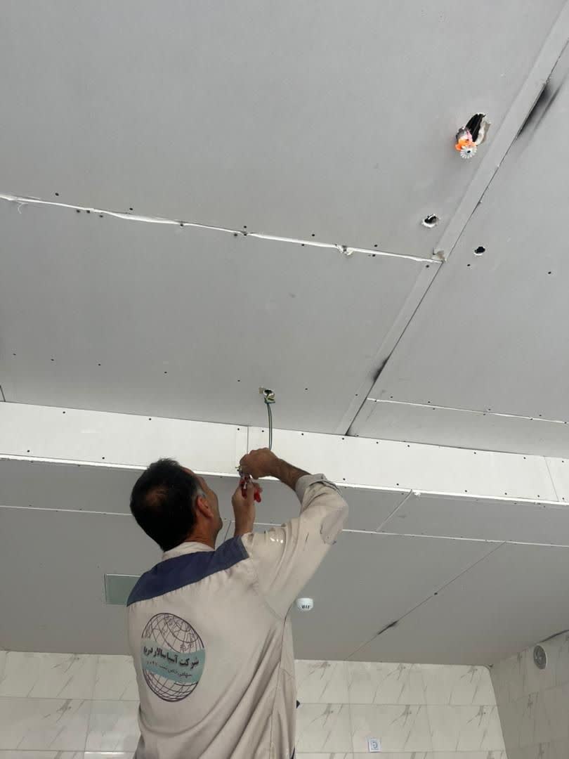 نصب درب اتاقی طبقه پنجم / تایل سقف تجاری / ادامه سیمکشی و کلید و پریز طبقه پنجم
