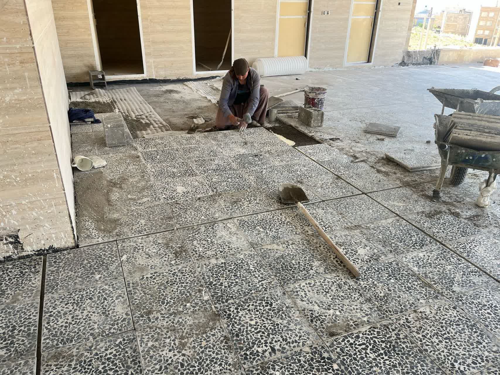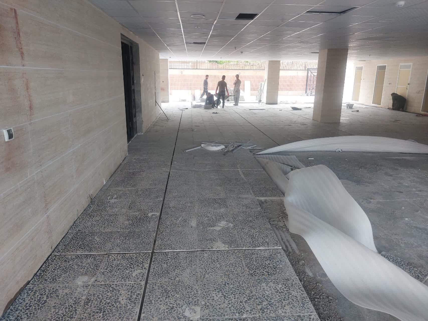 ادامه فرش کردن موزائیک کف پارکینگ همکف /