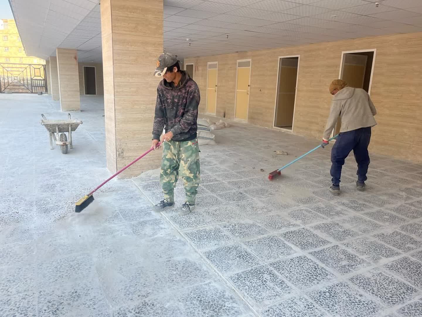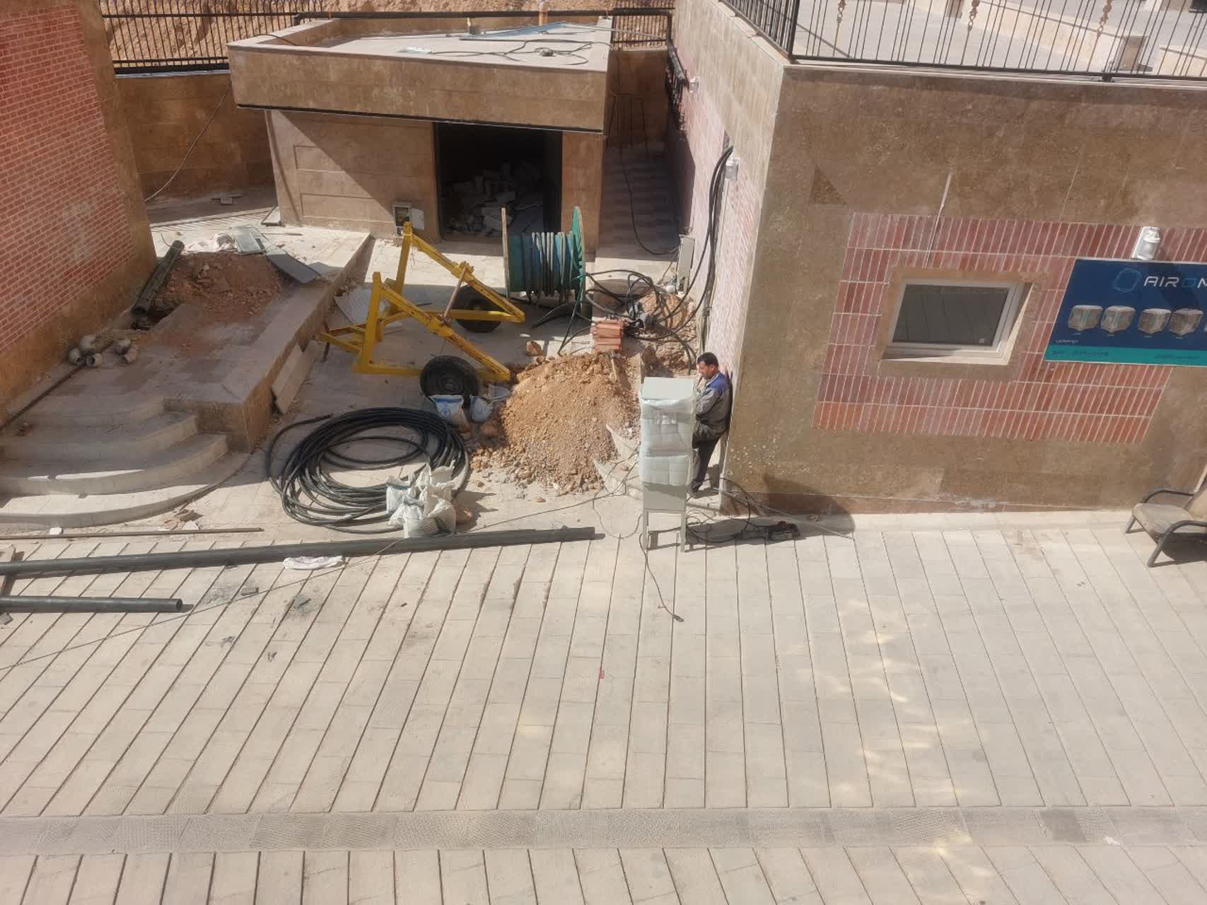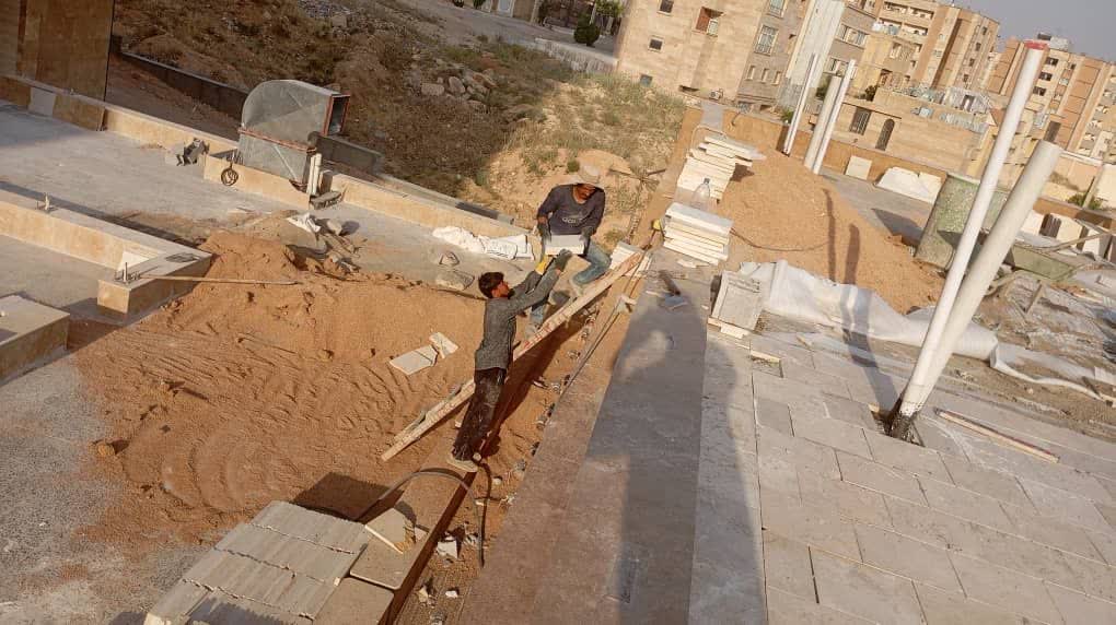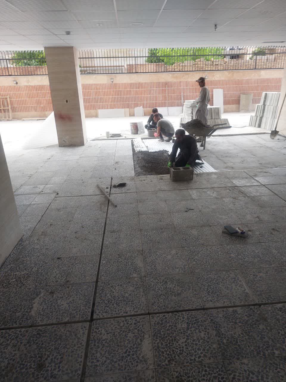 شروع فرش کردن حیاط کناری بلوک b