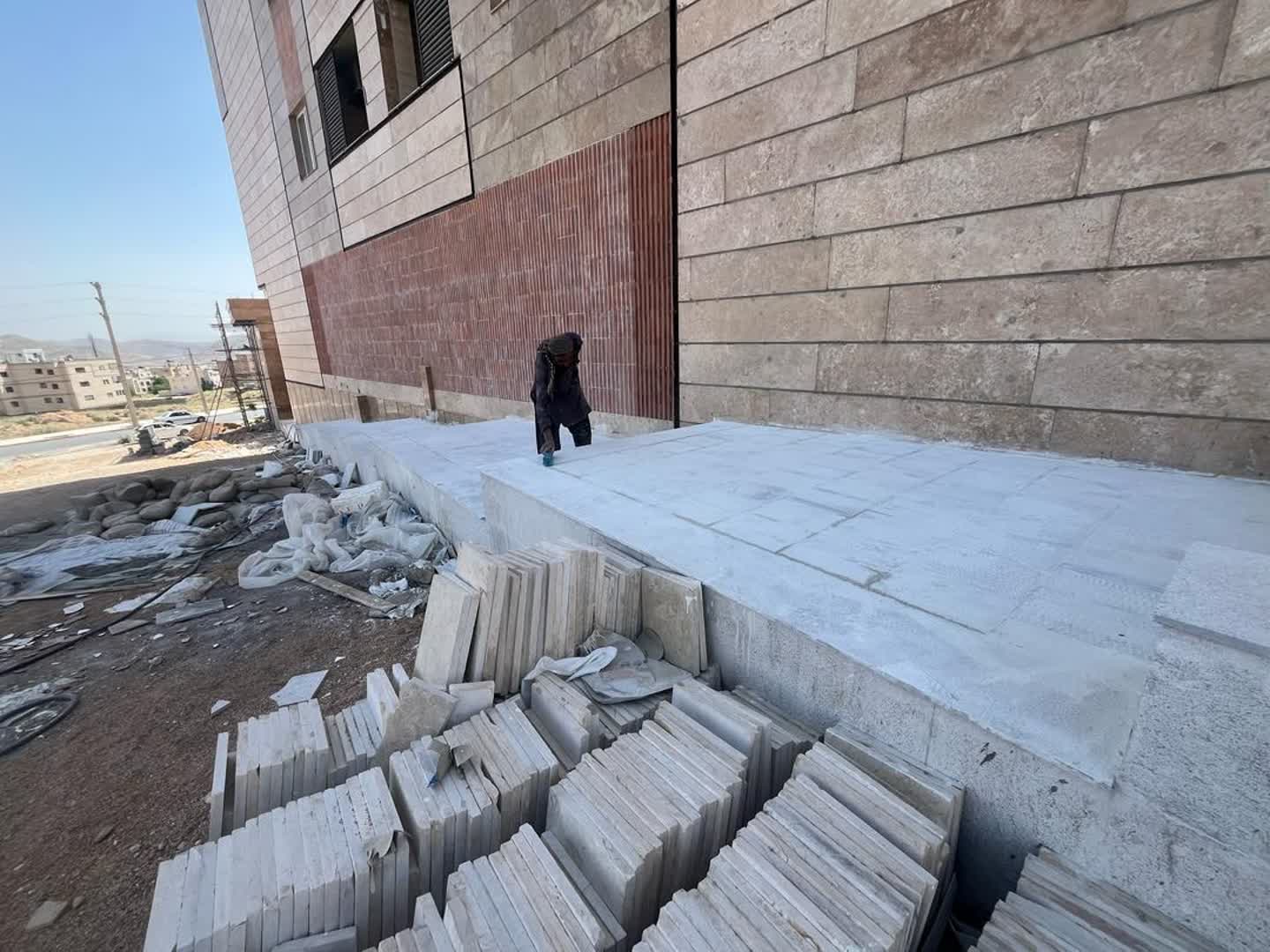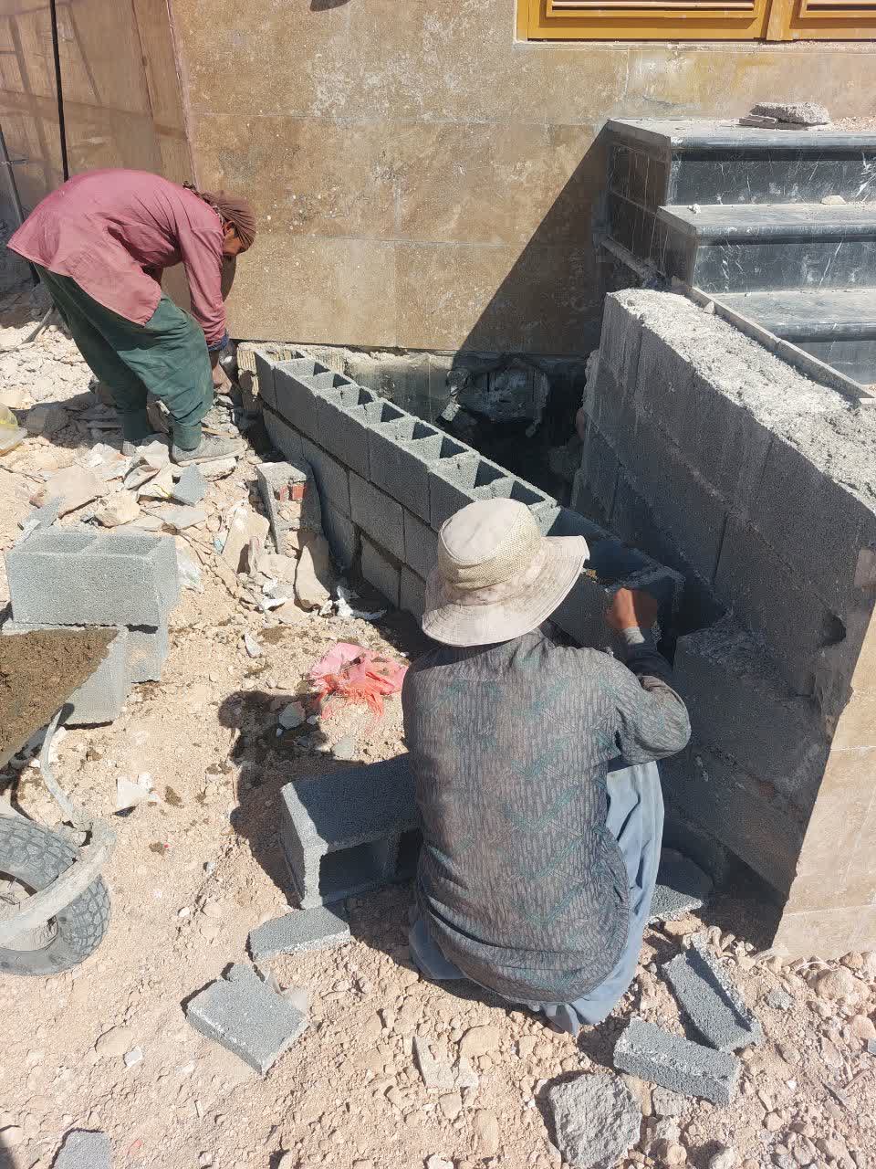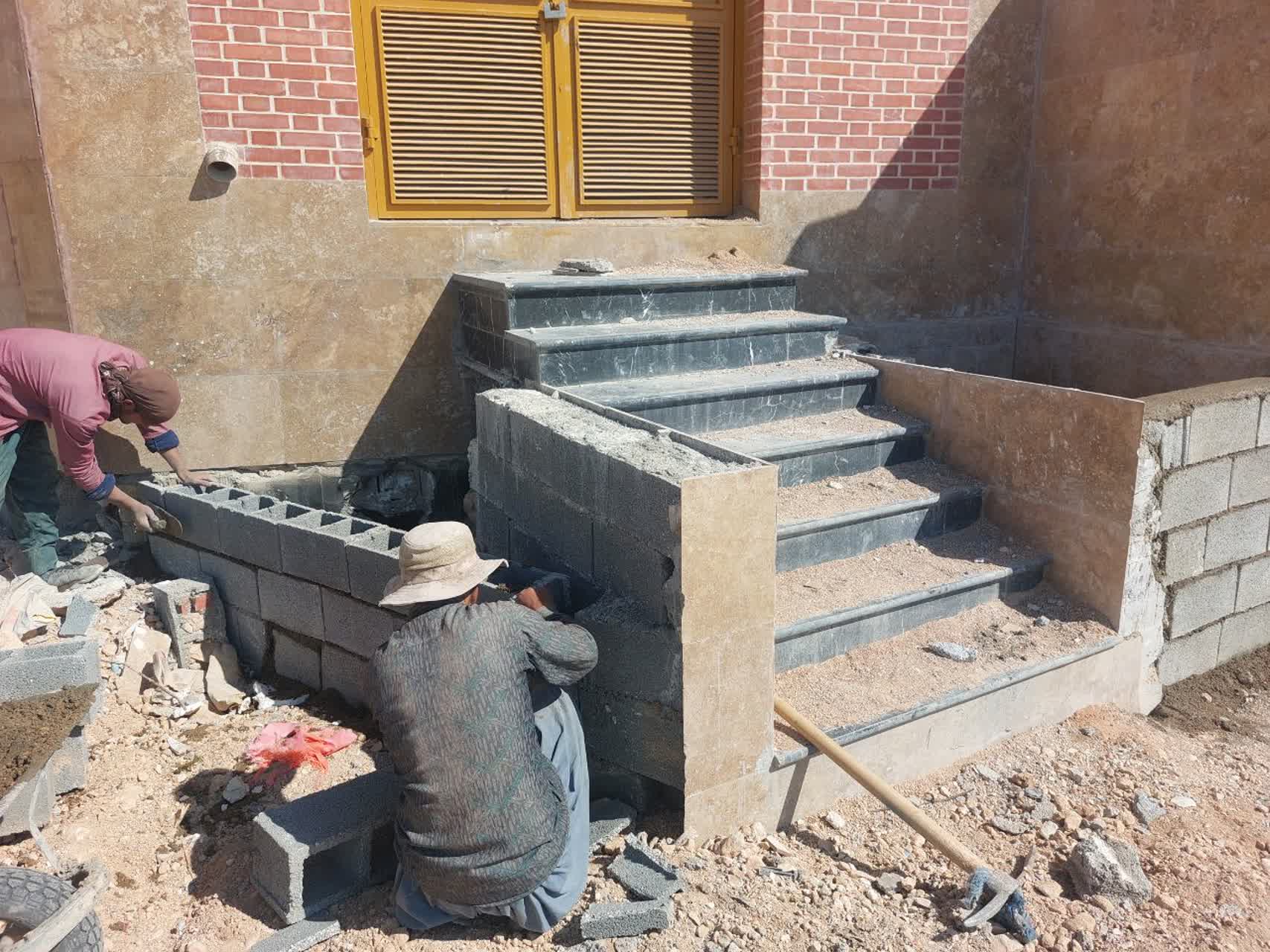 شروع فرش کردن حیاط کناری بلوک b