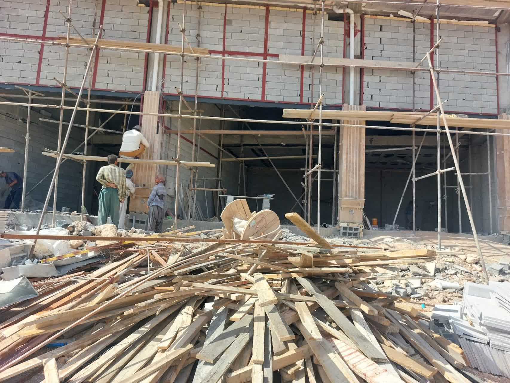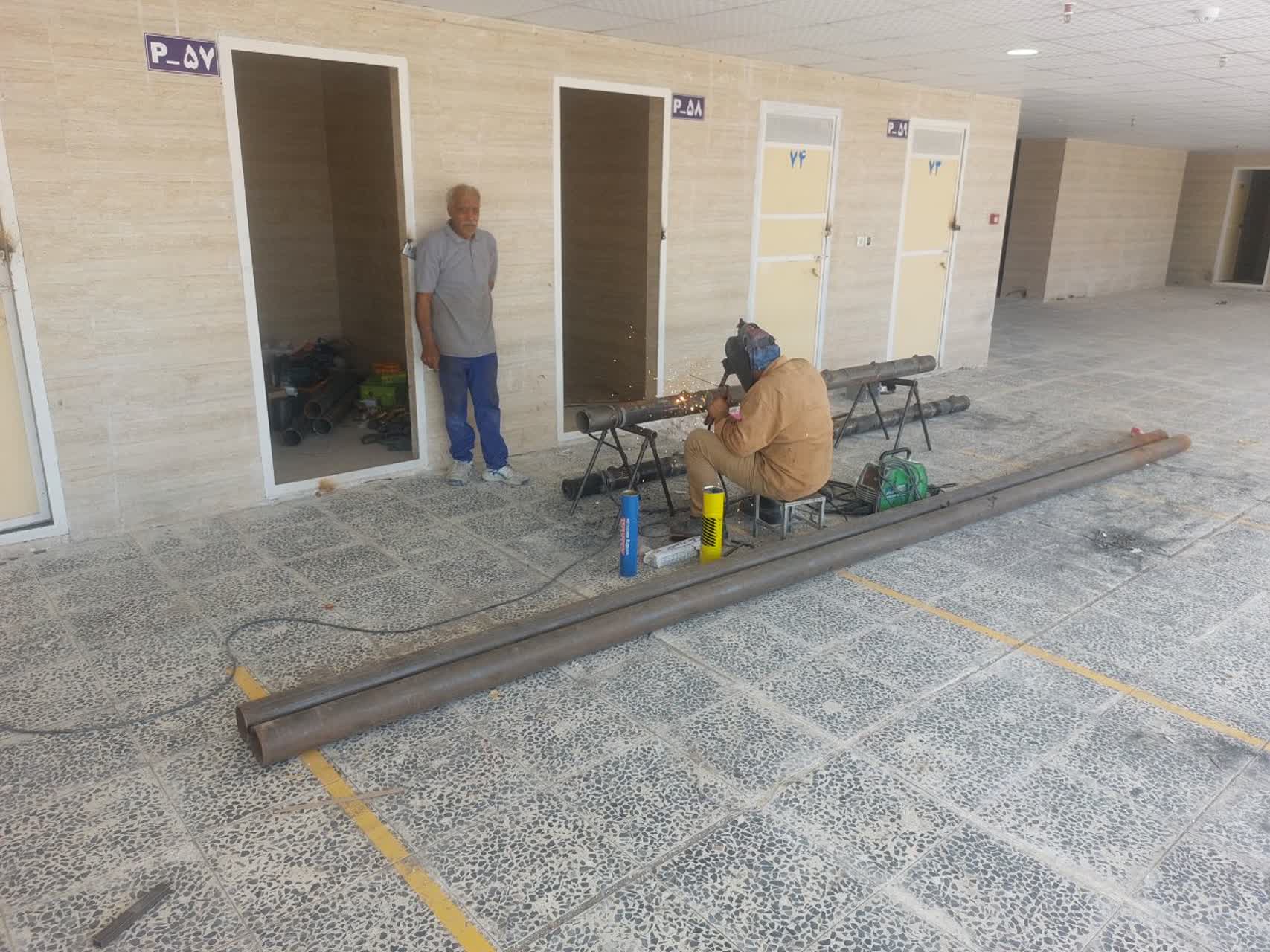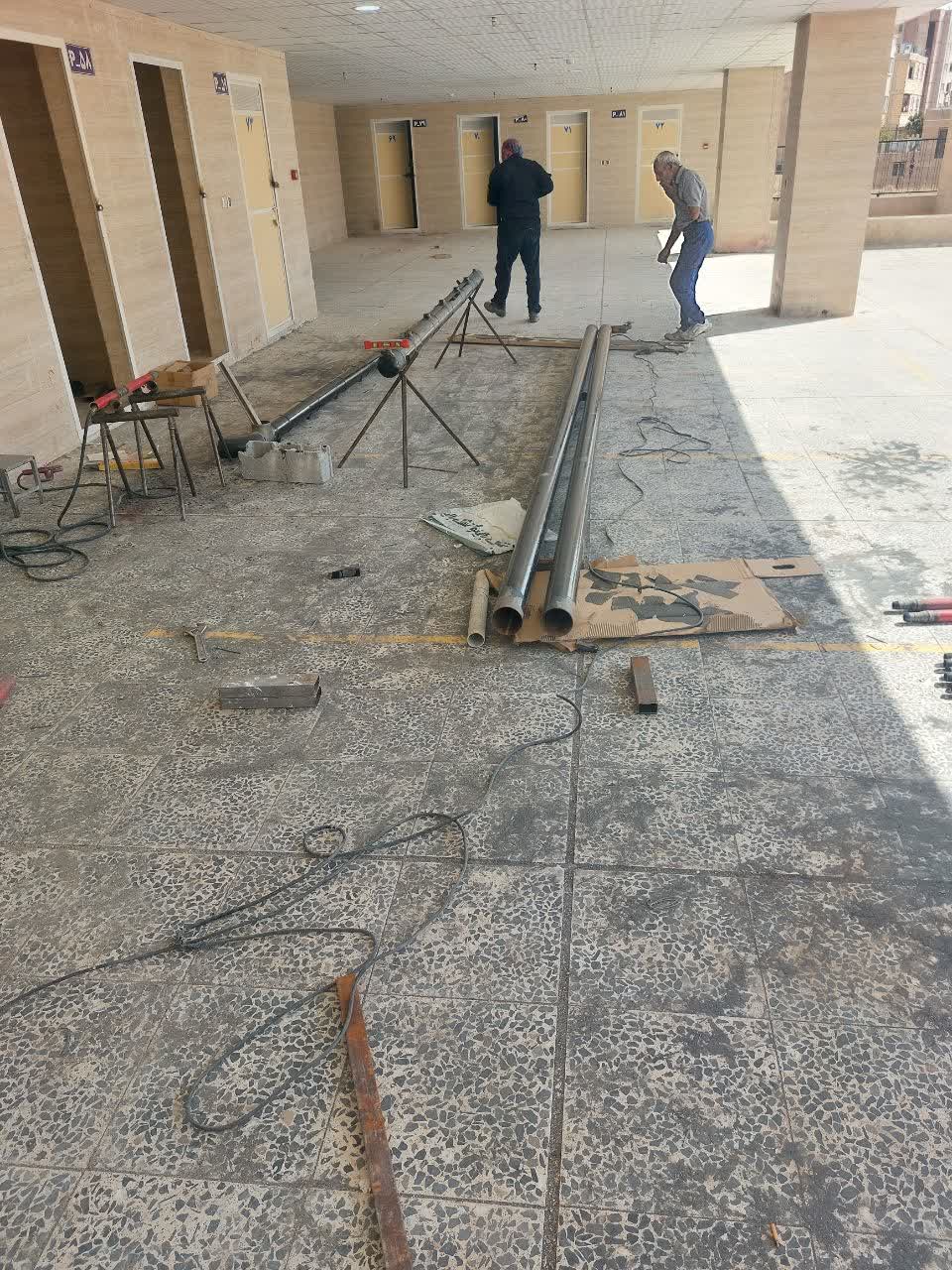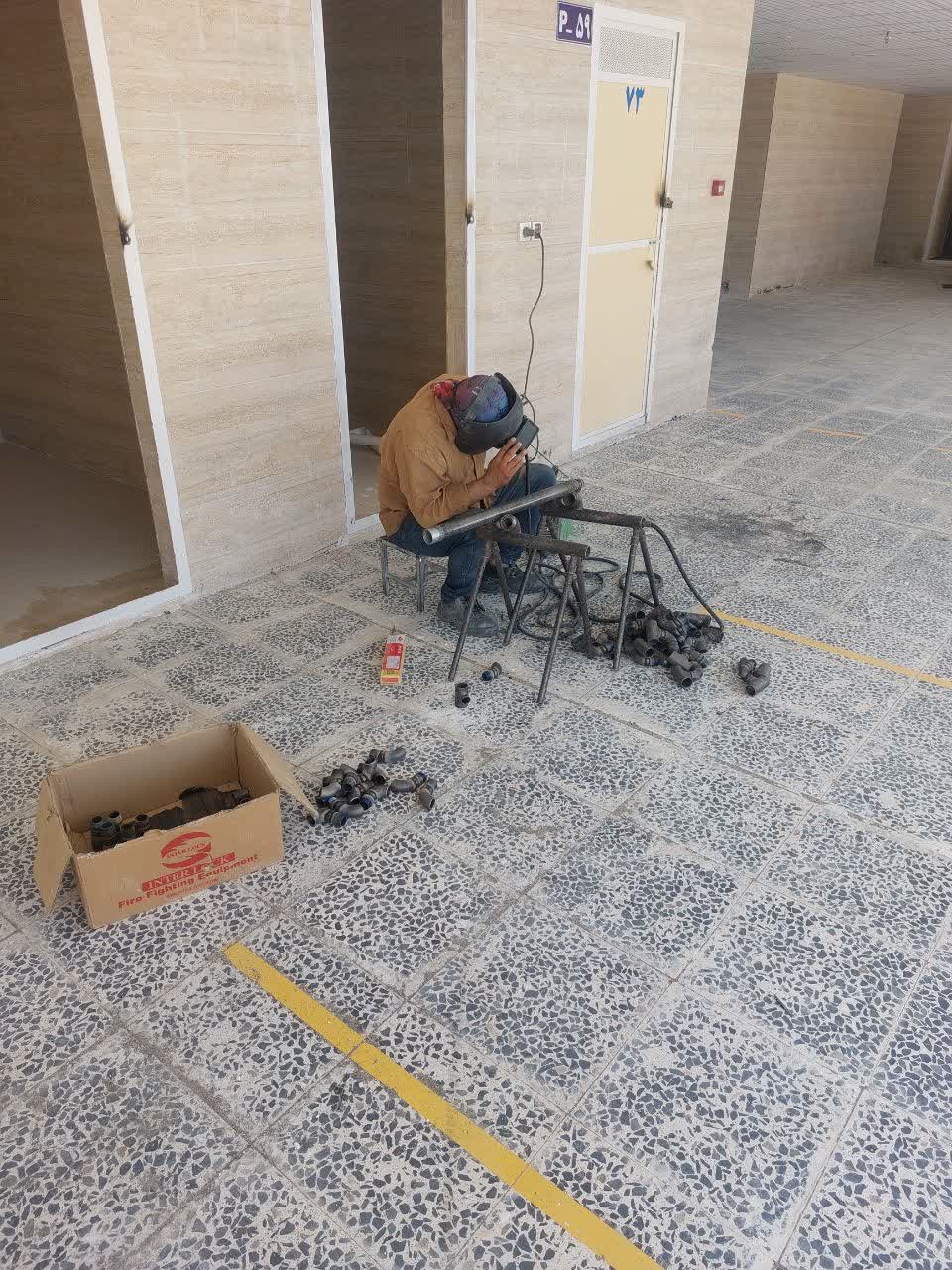 ادامه کارهای جوشکاری / ادامه تکمیل کردن واحد های تجاری