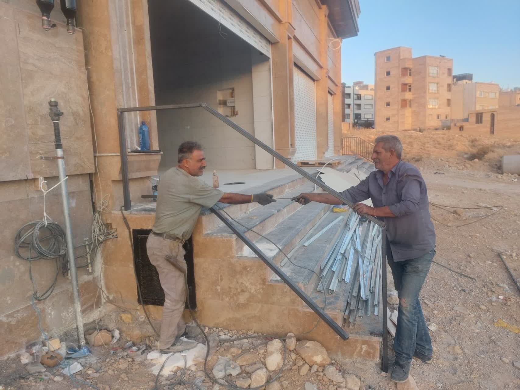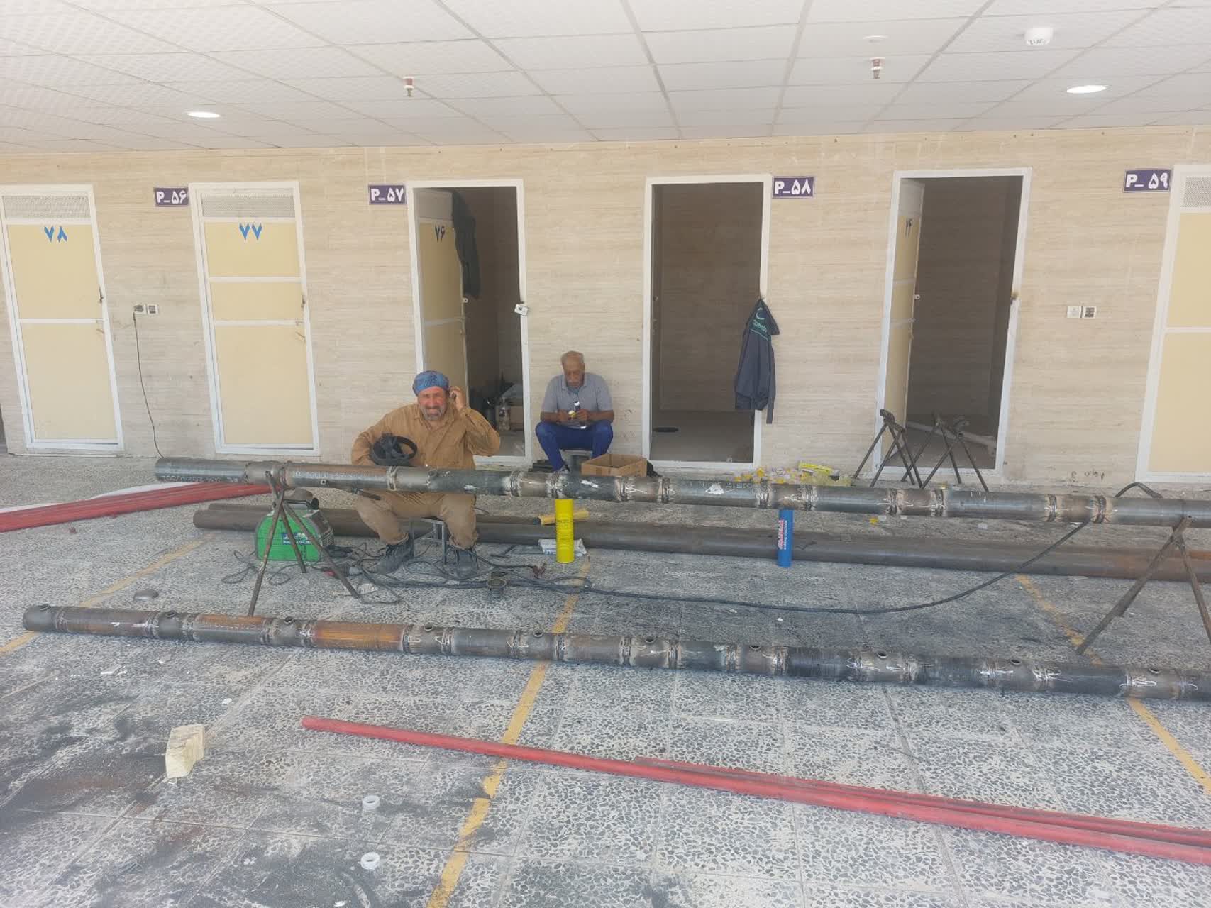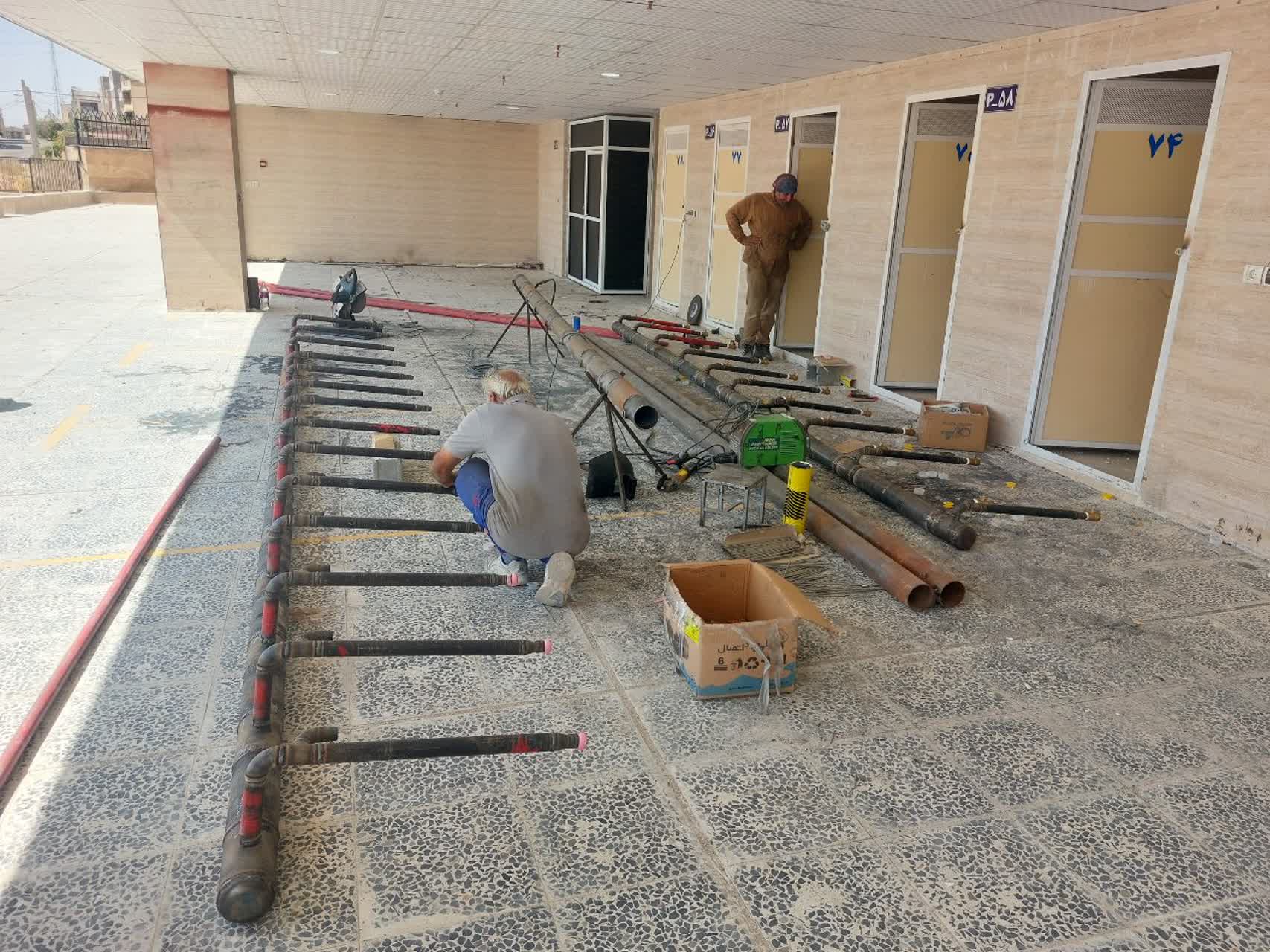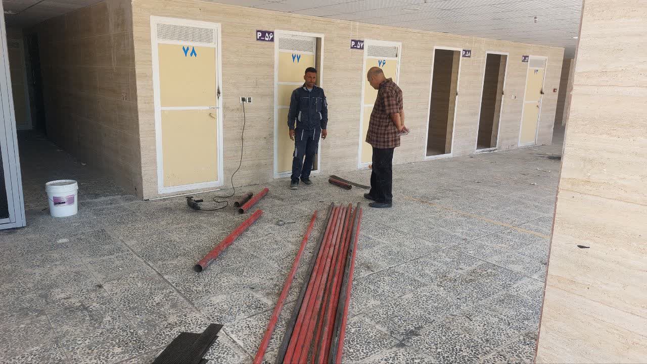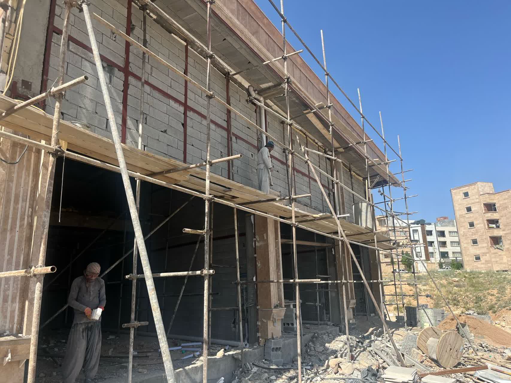 ادامه کارهای جوشکاری / ادامه تکمیل کردن واحد های تجاری