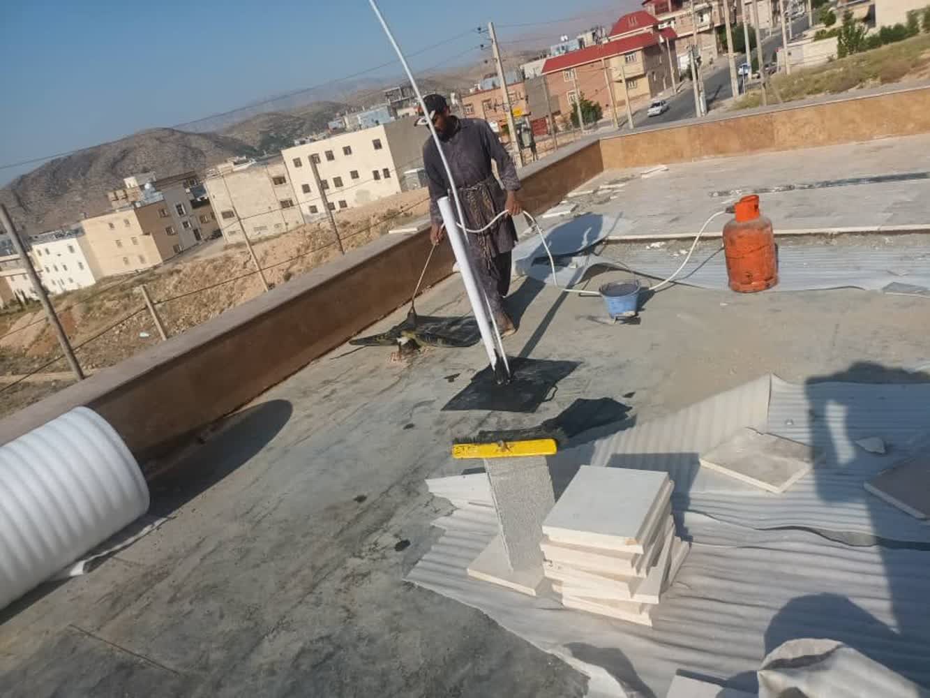 کف سازی پشت بام اتاق پست