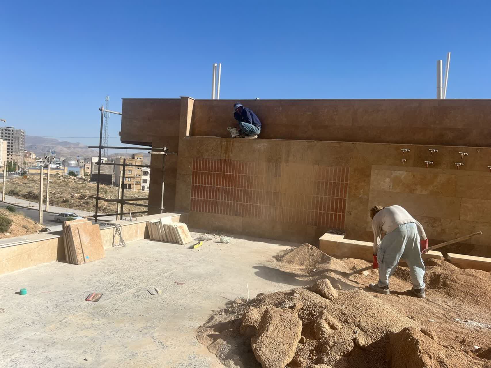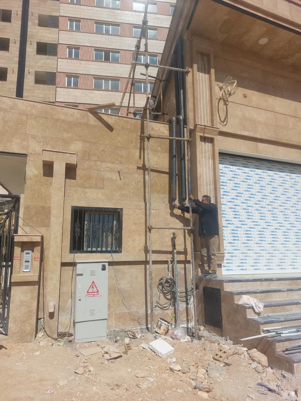 ادامه تکمیل کردن نمای سرویس بهداشتی محوطه /