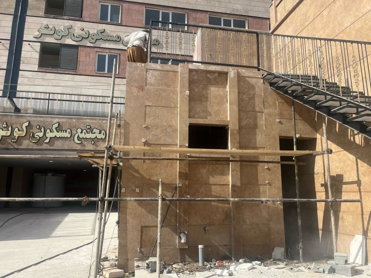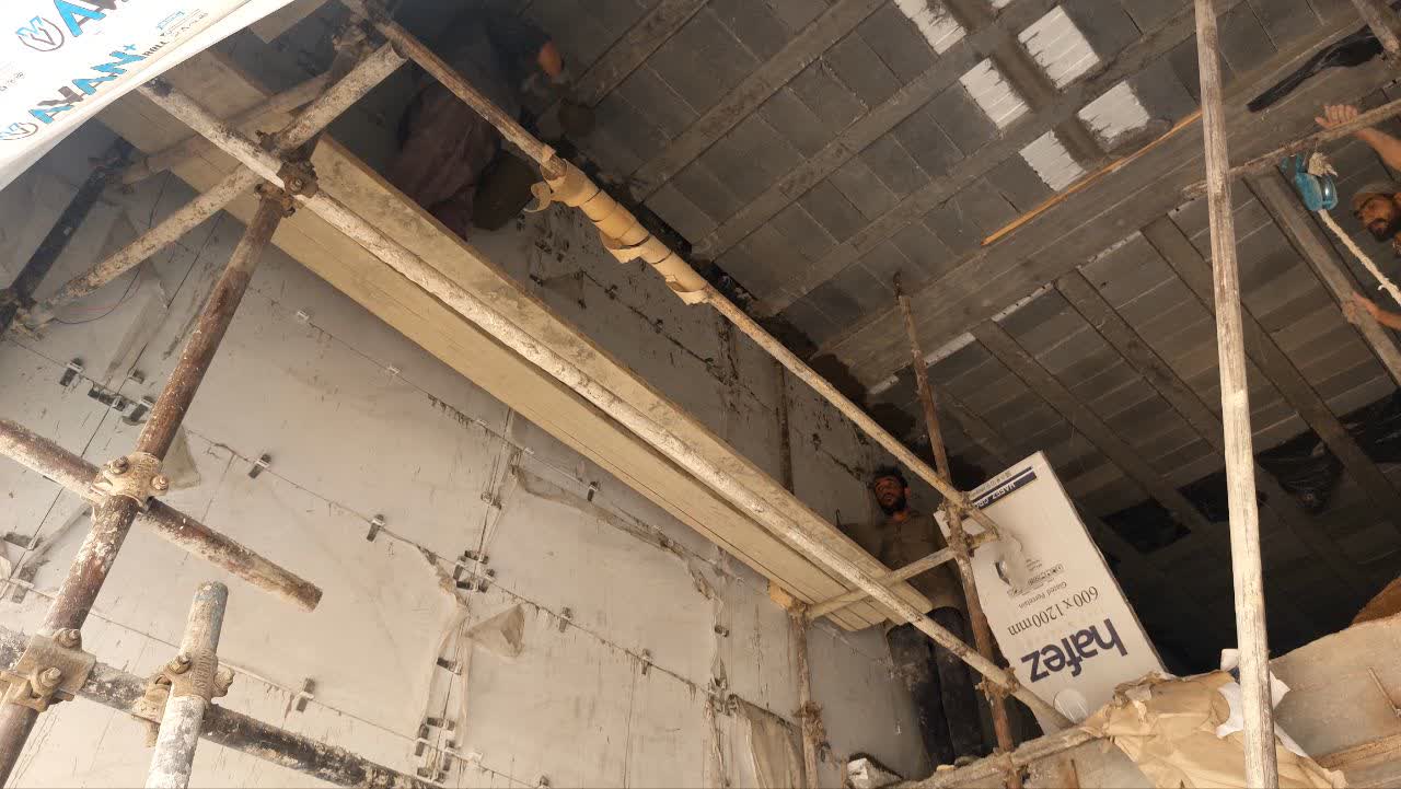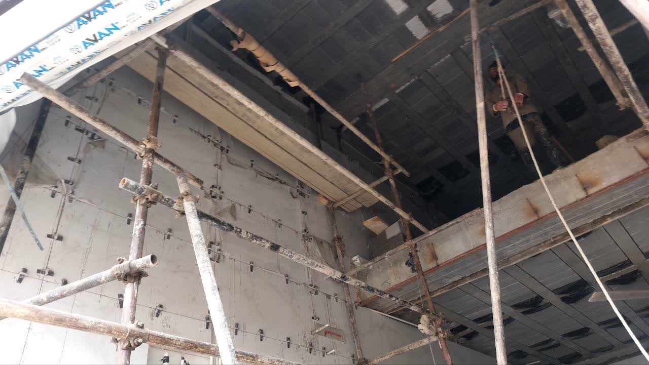 ادامه تکمیل کردن سقف بالکن تجاری ها
