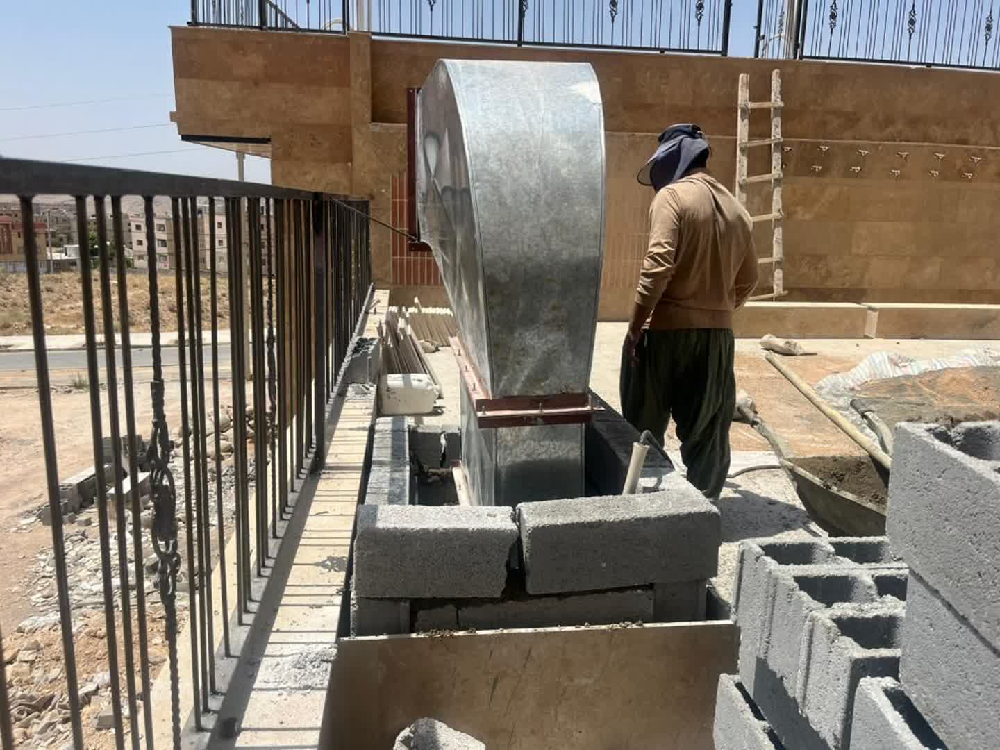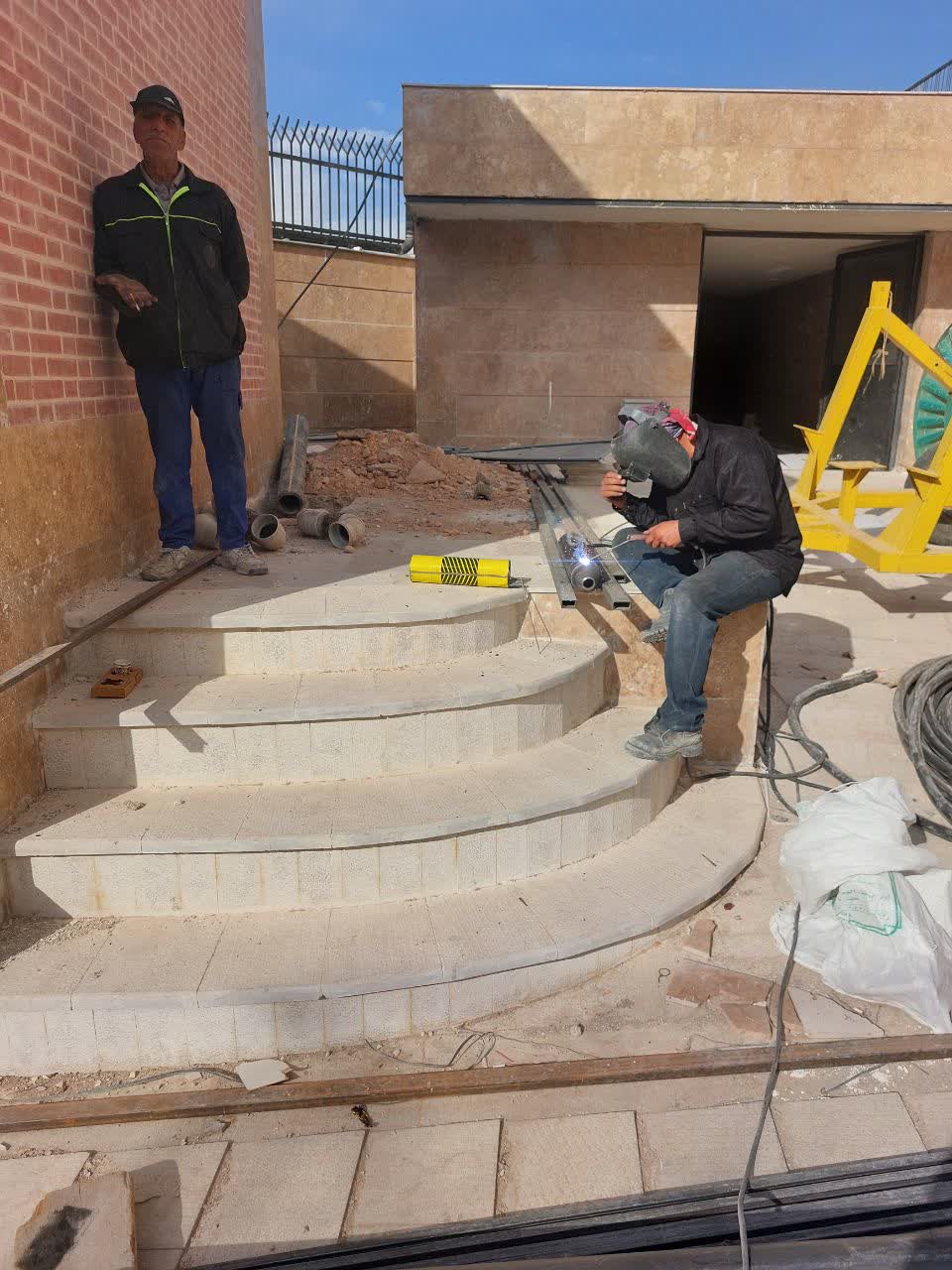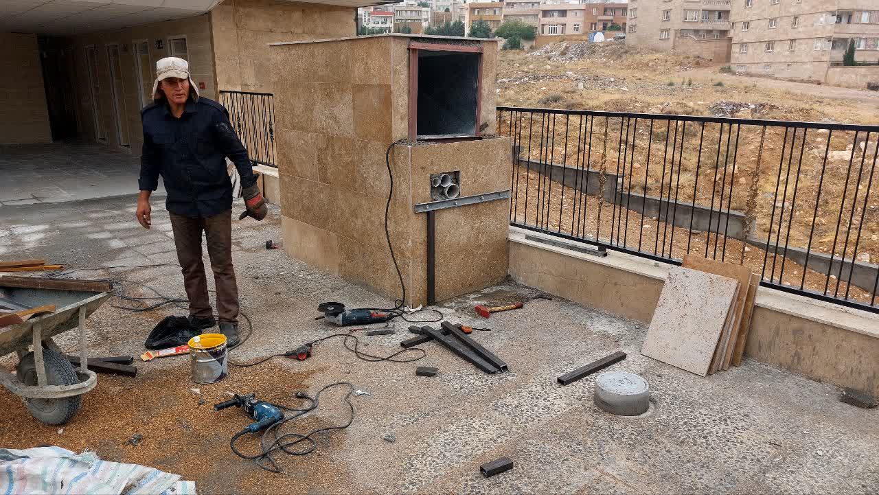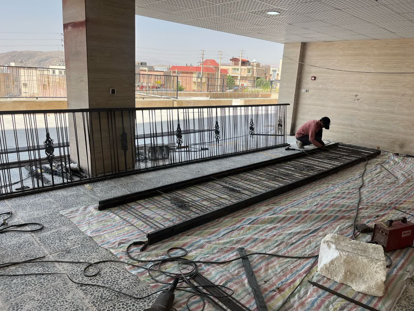 جوشکاری حفاظ روی دیوار کناری محوطه