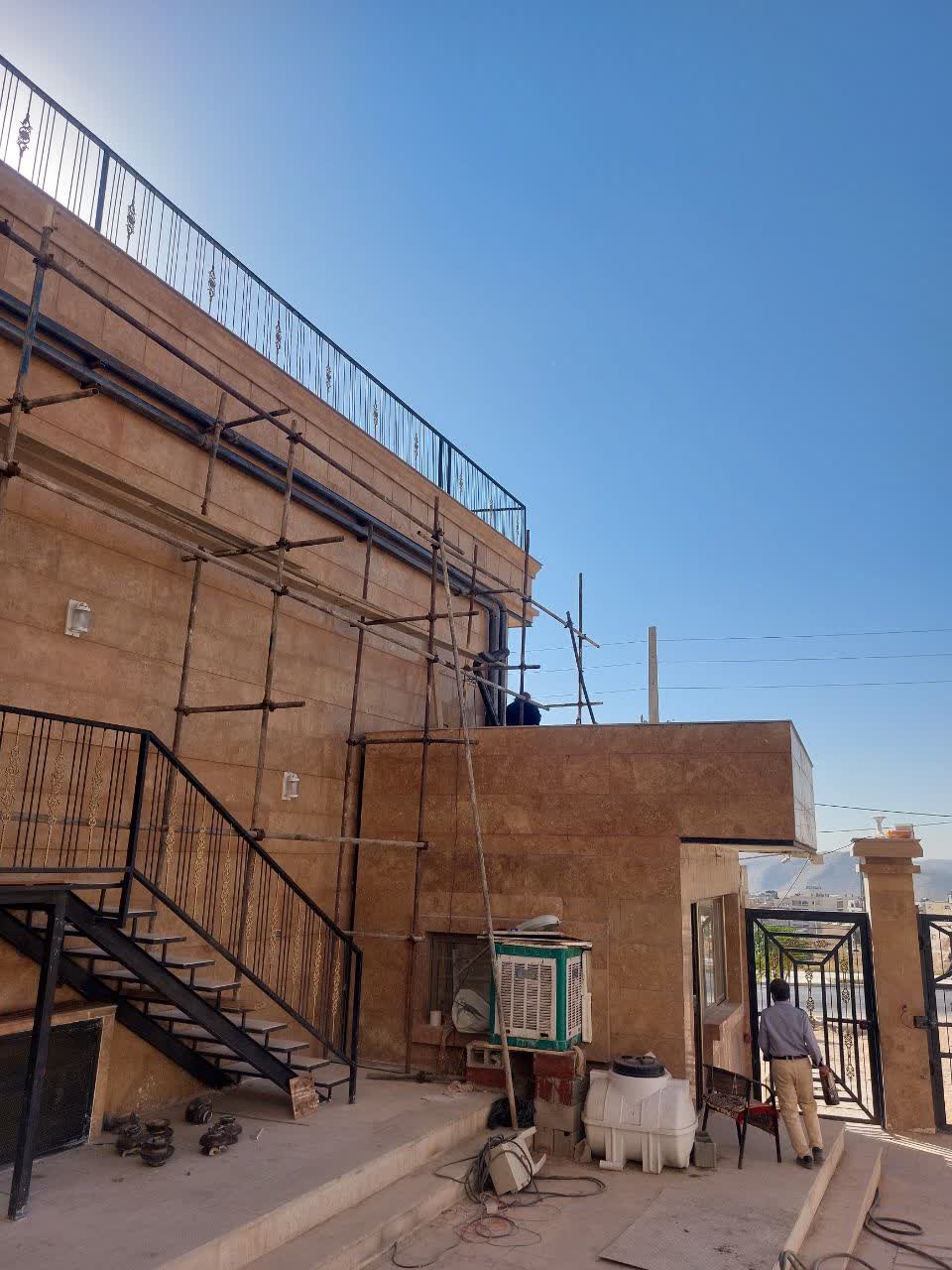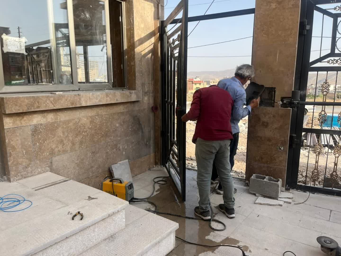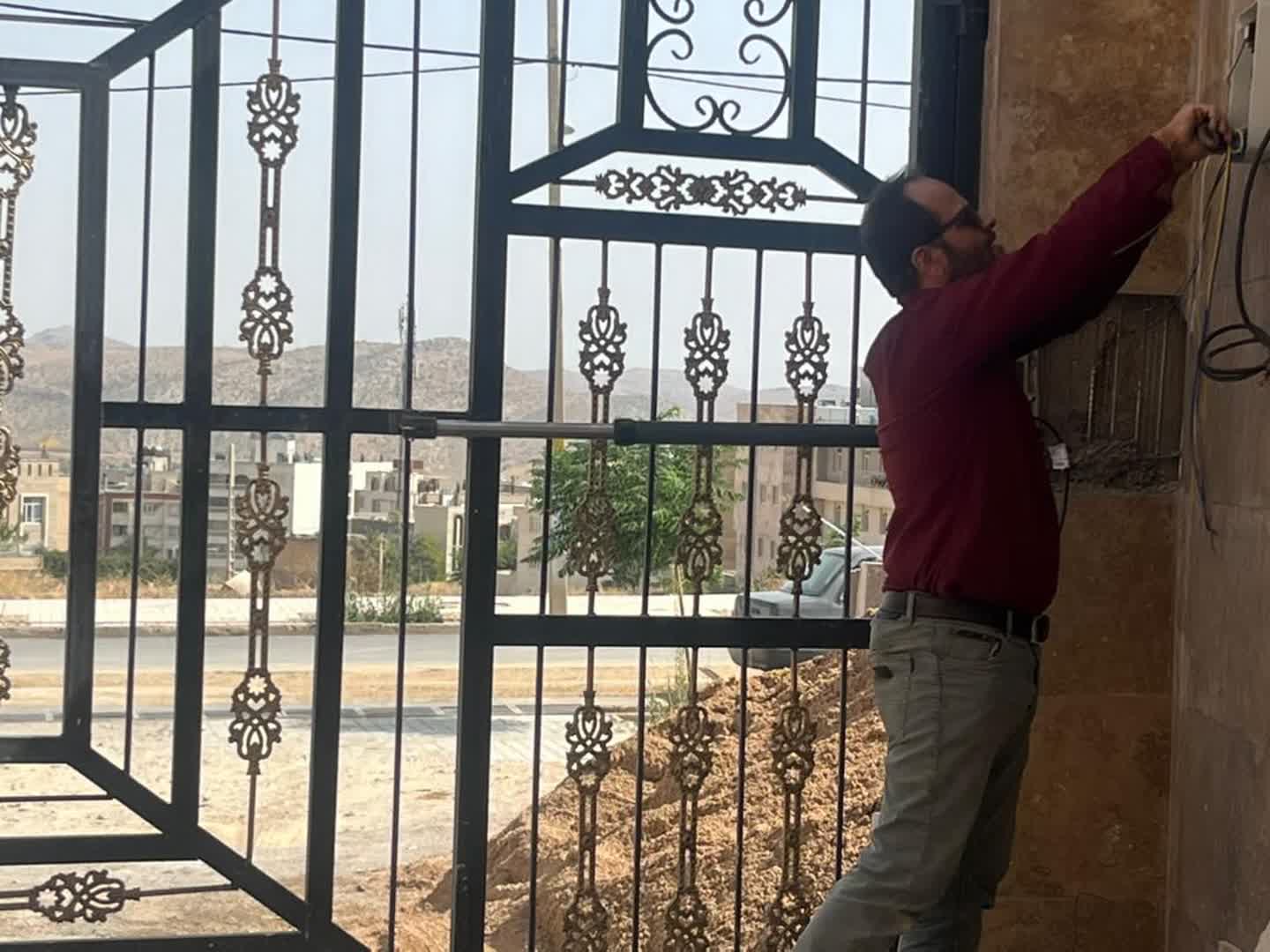 جوشکاری حفاظ روی دیوار کناری محوطه
