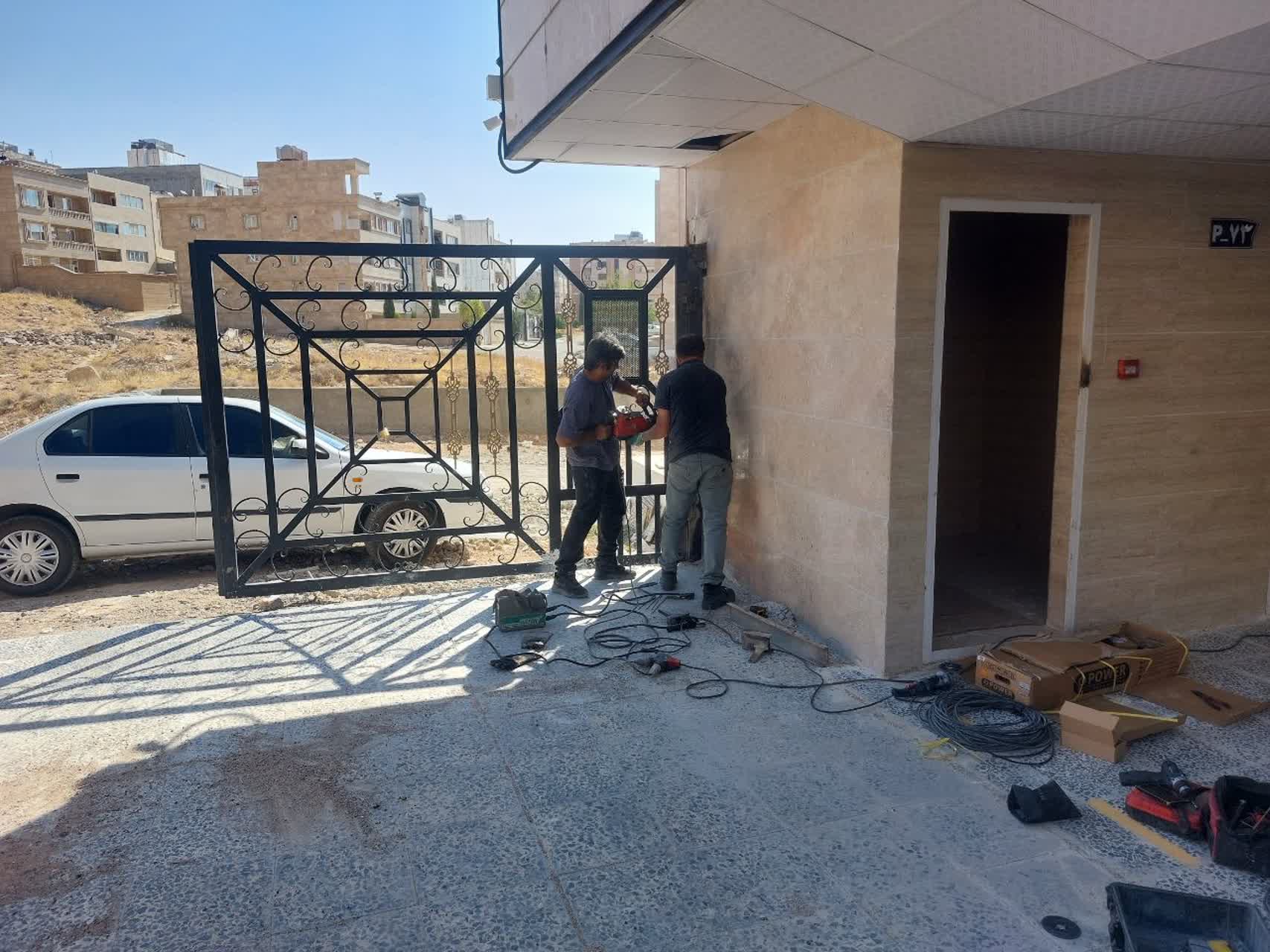 جوشکاری درب ورودی پارکینگ همکف /