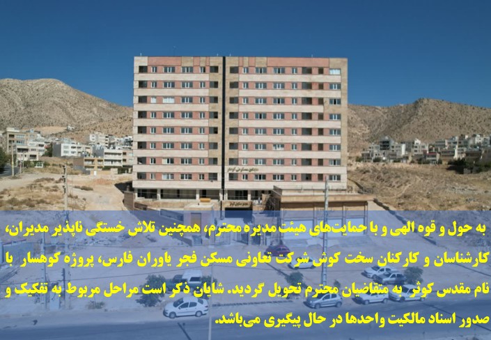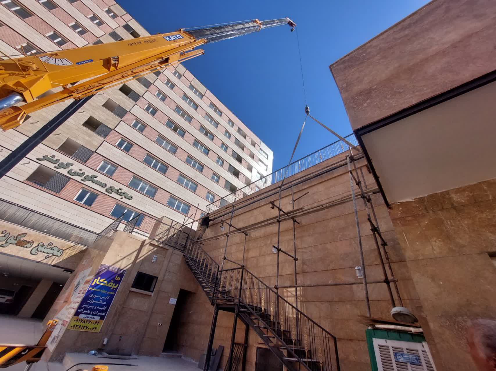 پروژه کوهسار ۱۴۰۳/۱۲/٠٩ : ادامه محوطه سازی / تکمیل پنجره های نورگیر / ادامه تمیز کاری واحدها / ادامه تکمیل فیبر نوری