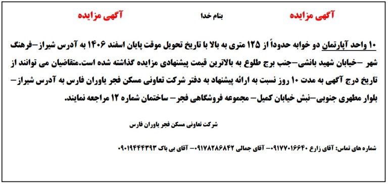 ::: صفحه مزایده ها و مناقصه های تعاونی مسکن فجر